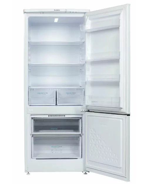 Данный двухкамерный холодильник оснащен морозильной камерой в нижней части, что позволяет оптимально организовать пространство для хранения как свежих, так и замороженных продуктов. Система автооттаивания избавит вас от необходимости вручную размораживать устройство, тем самым обеспечивая надежную работу и долгий срок службы.