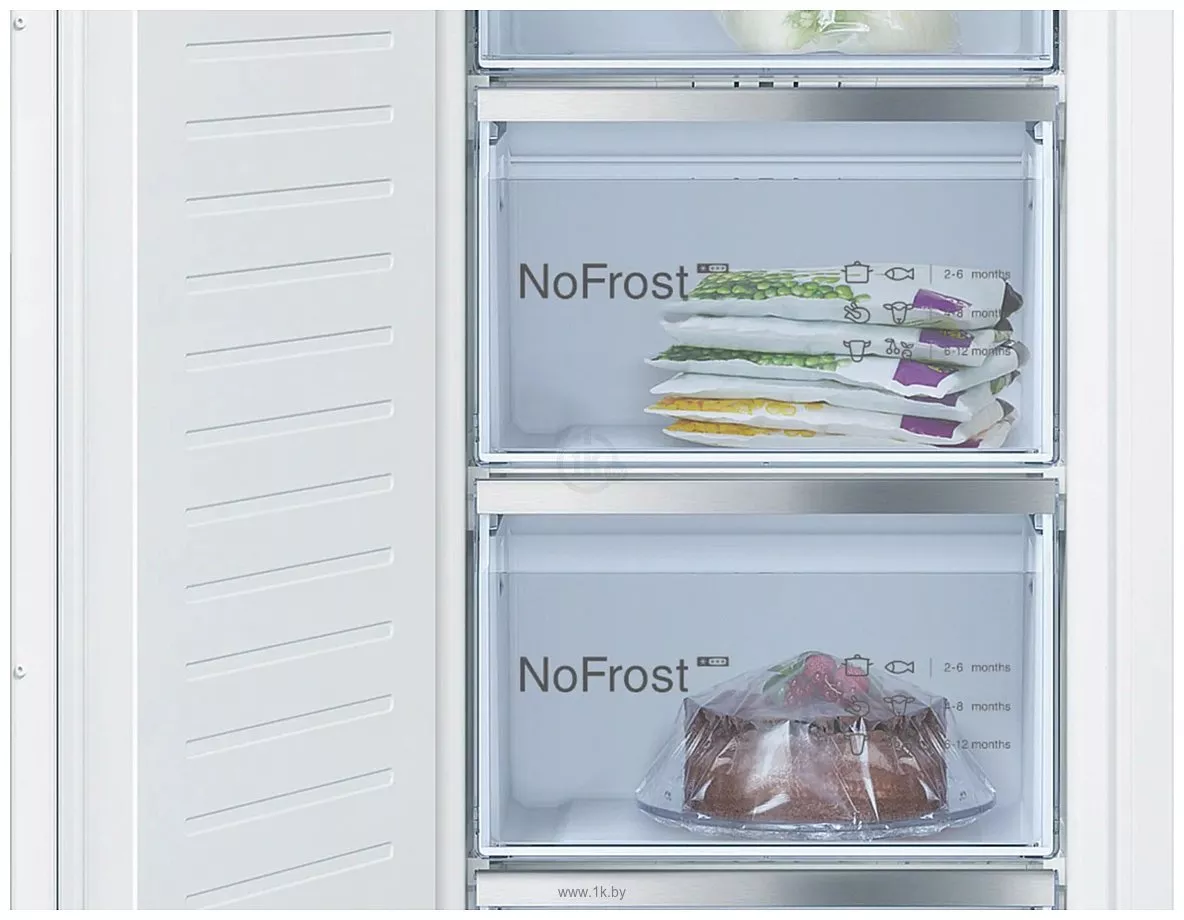 Одной из ключевых особенностей данной морозильной камеры является система NoFrost. Забудьте о рутине с размораживанием! Специальная конструкция предотвращает образование инея и наледи на стенках. Воздух циркулирует таким образом, что избыточная влага выводится наружу, оставляя продукты идеально замороженными, а внутреннее пространство — чистым и сухим.