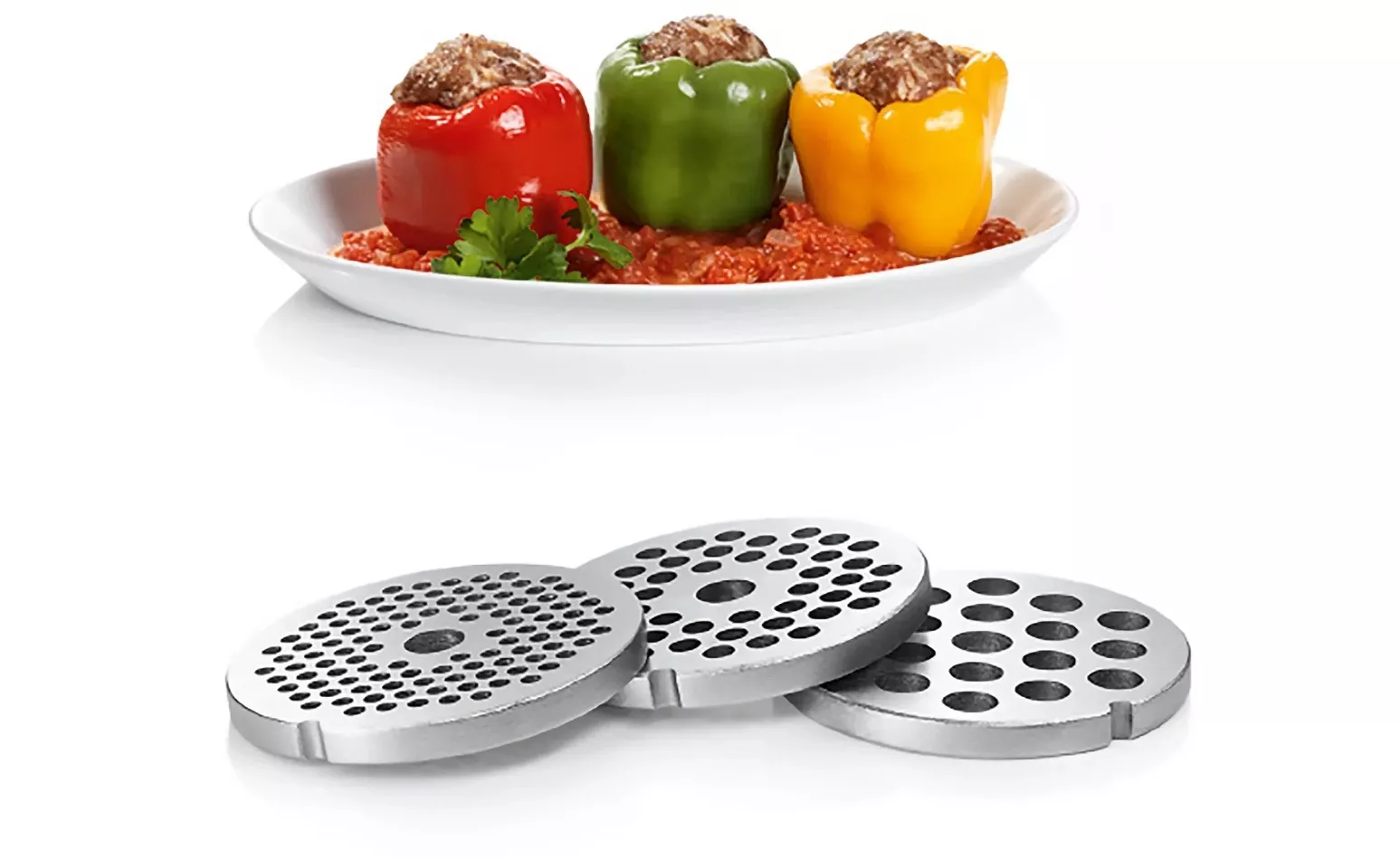 диск для фарша, насадка для кеббе, насадка для приготовления колбас, насадка для шинковки, насадка-терка, соковыжималка |
