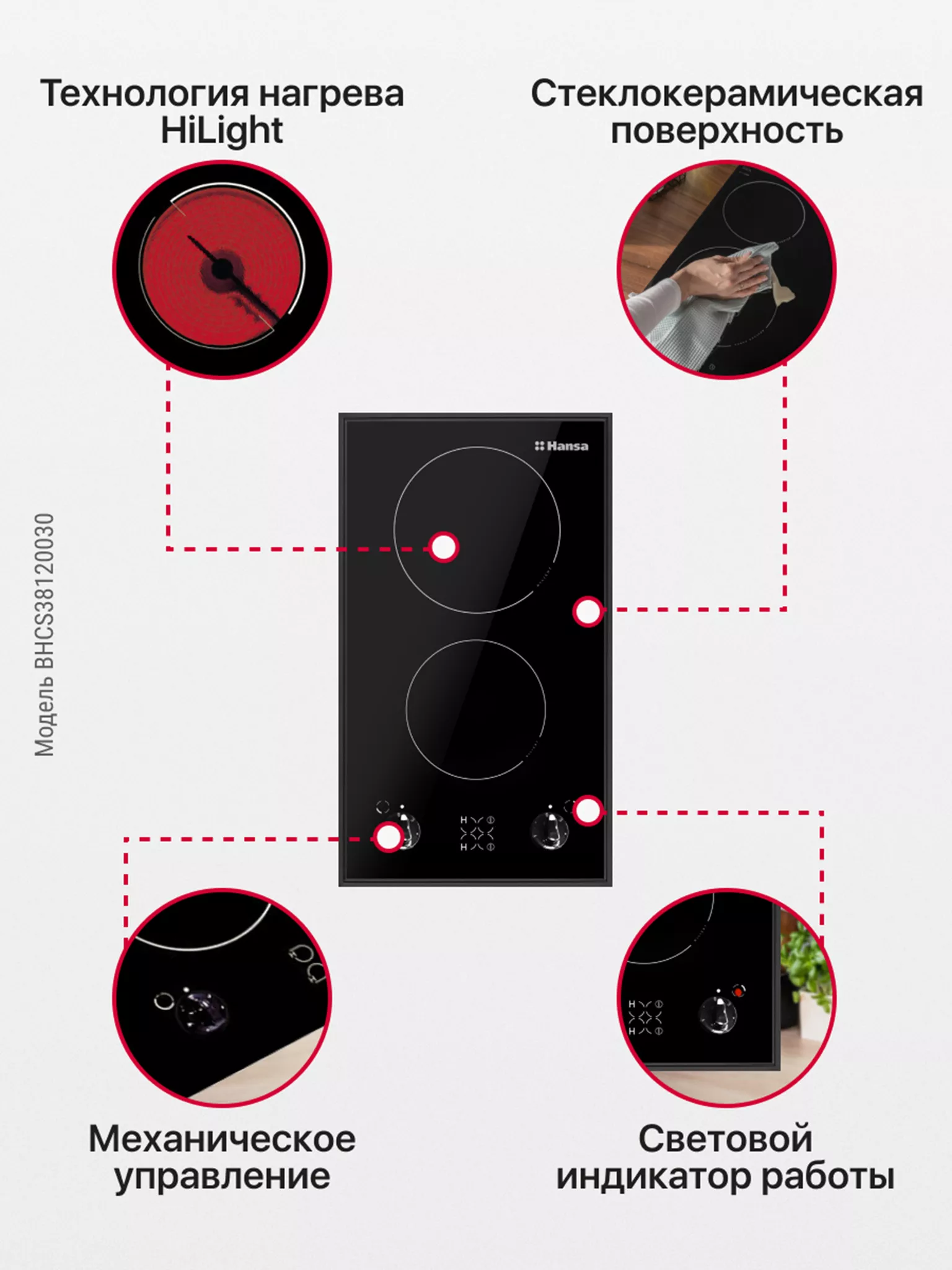 Встраиваемая электрическая варочная панель Hansa BHCS38120030
