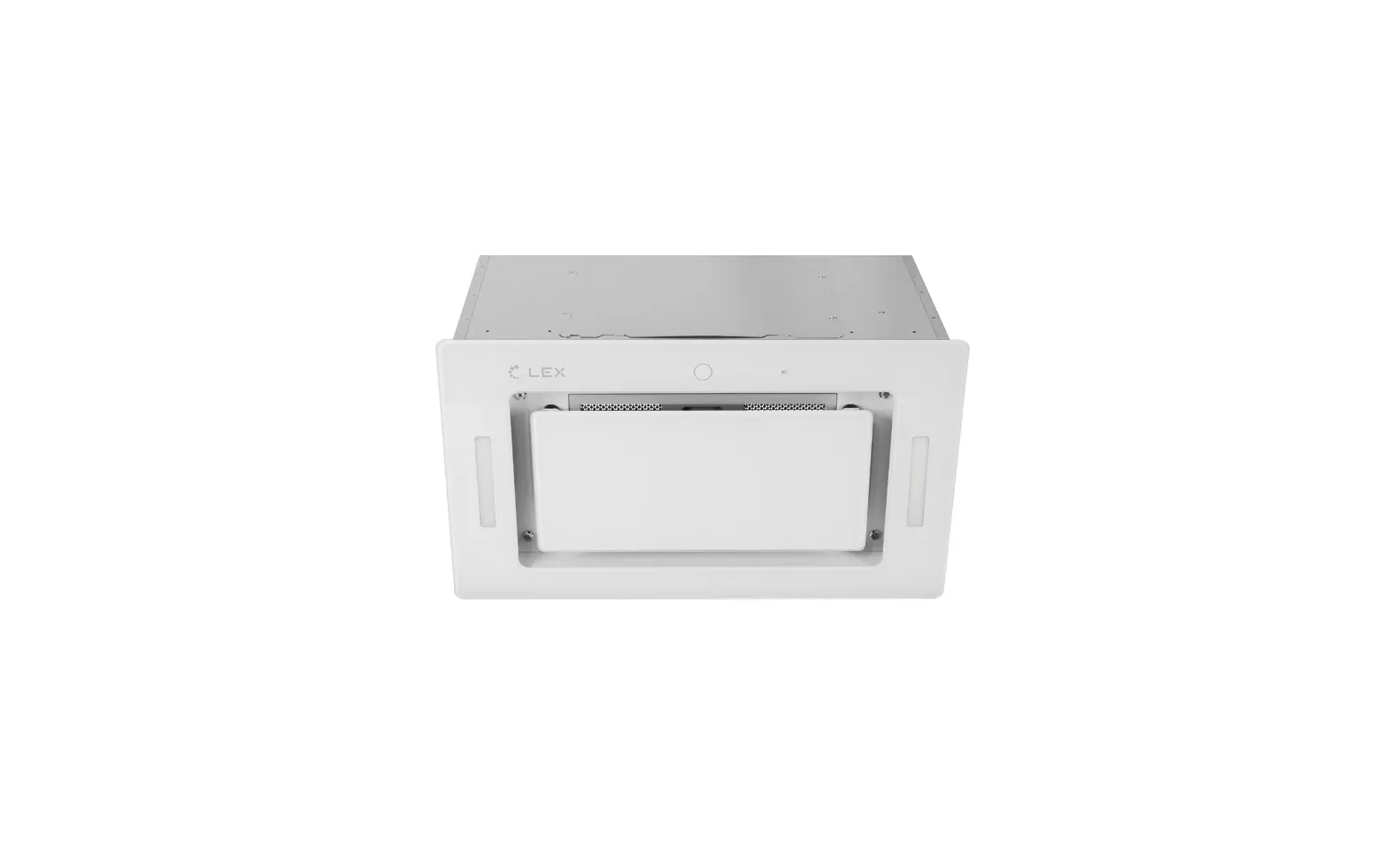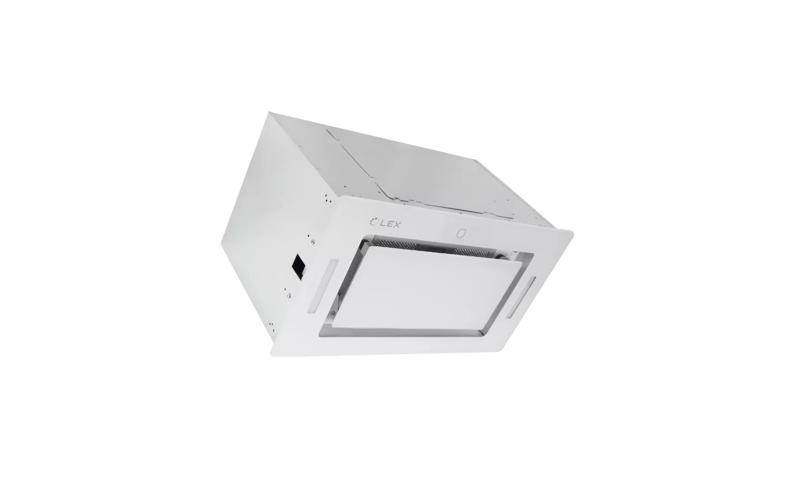 LEX GS BLOC GS 600 WHITE – один из лучших вариантов если необходимо спрятать вытяжку, сохранив весь ее функционал. Модель чёрного цвета имеет 3 скорости, сенсорное управление FANTOM, красивую подсветку LED лампами. Модель шириной 600 мм имеет белый цвет, оснащена периметральной аспирацией (SPA), алюминиевым фильтром, который можно мыть в посудомоечной машине. LEX GS BLOC GS 600 WHITE может работать как в режиме отвода воздуха, так и в режиме рециркуляции.