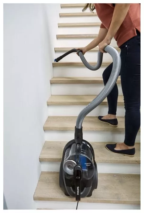 Пылесос Philips PowerPro Expert отличается компактными размерами (ШхВхГ: 29.2 x 29.2 x 50.5 см), что позволяет удобно хранить его даже в малогабаритной прихожей или кладовой. Его современный дизайн органично впишется в интерьер вашего дома.
