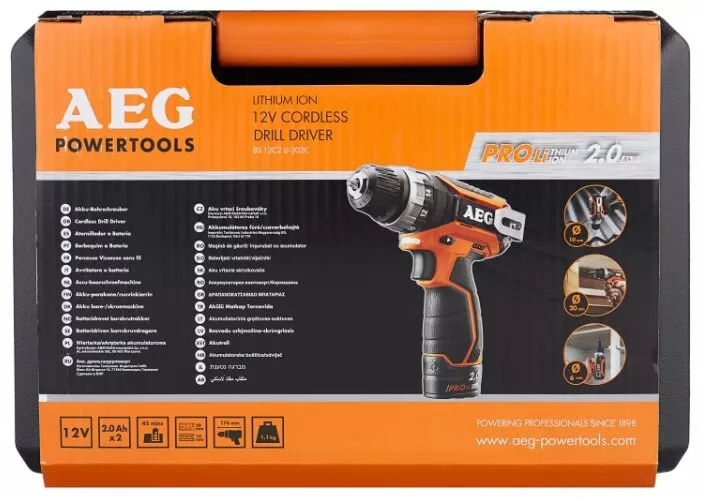 Дрель-шуруповерт аккумуляторная AEG BS 12C2 LI-202C 34 Н·м