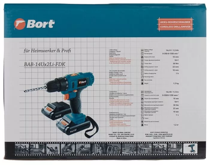Дрель-шуруповерт аккумуляторная BORT BAB-14Ux2Li-FDK