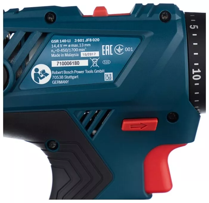 Дрель-шуруповерт аккумуляторная BOSCH GSR 140-LI 1.5 А·ч x2 кейс 50 Н·м