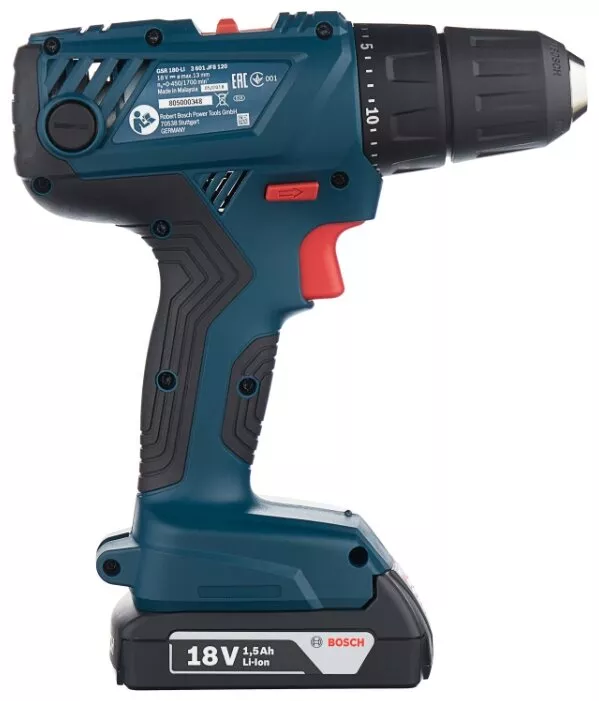 Дрель-шуруповерт аккумуляторная BOSCH GSR 180-LI 1.5 А·ч x2 кейс 54 Н·м