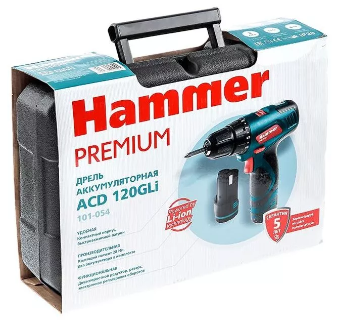 Дрель-шуруповерт аккумуляторная HAMMER ACD120GLi PREMIUM 28 Н·м