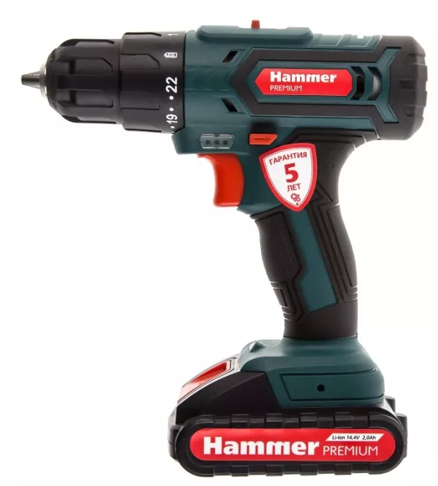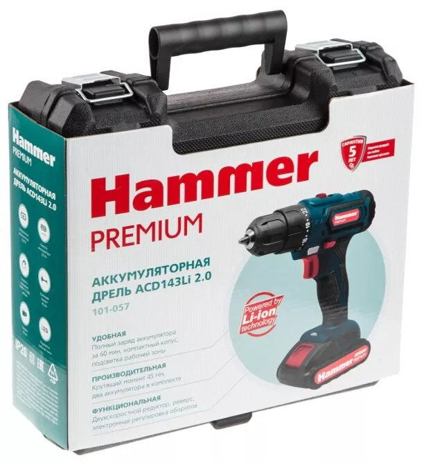 Дрель-шуруповерт аккумуляторная HAMMER ACD143Li 2.0 PREMIUM 45 Н·м