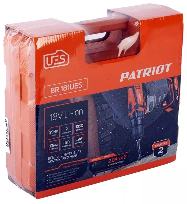 Дрель-шуруповерт аккумуляторная PATRIOT BR 181UES Li-Ion 2.0 А·ч 18 В х2 кейс 29 Н·м
