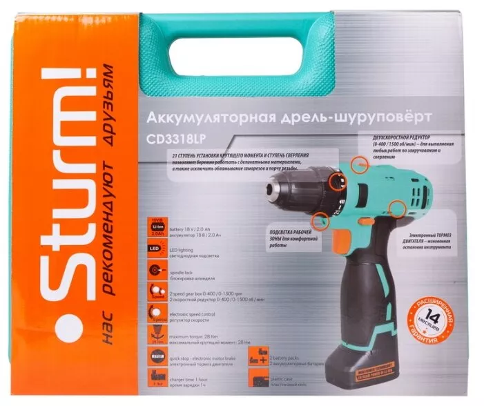 Дрель-шуруповерт аккумуляторная STURM! CD3318LP 30 Н·м