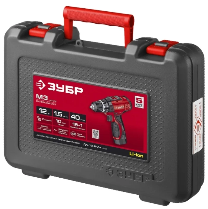 Дрель-шуруповерт аккумуляторная ЗУБР ДА-12-2-Ли КМ3 40 Н·м