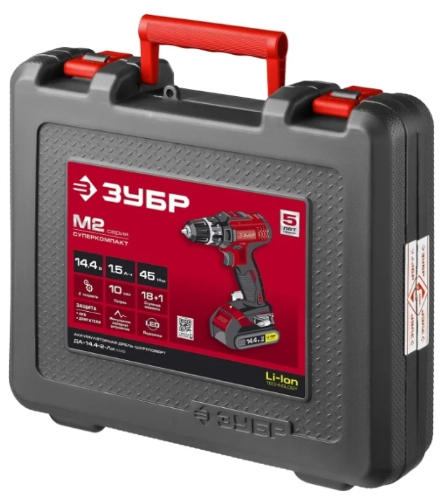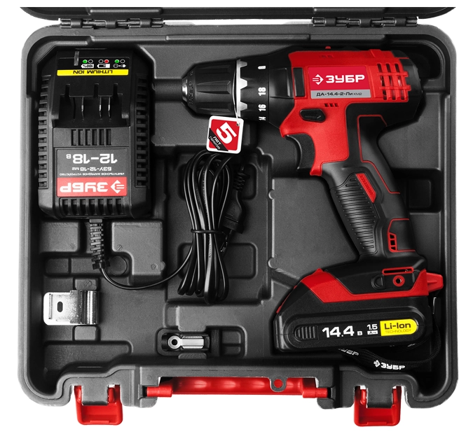 Дрель-шуруповерт аккумуляторная ЗУБР ДА-14.4-2-Ли КМ2 45 Н·м