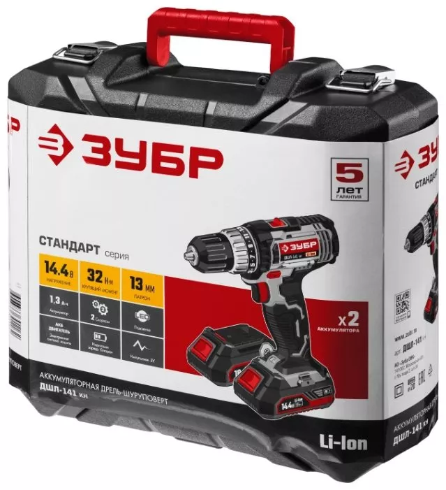 Дрель-шуруповерт аккумуляторная ЗУБР ДШЛ-141 КН 32 Н·м