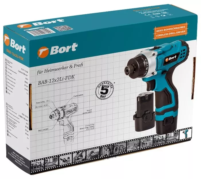 Шуруповерт аккумуляторный BORT BAB-12X2LI-FDK 35 Н·м