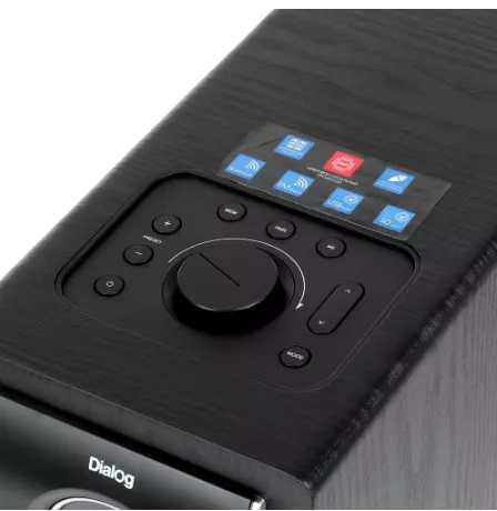Система Dialog AP-2500 Progressive оснащена USB-интерфейсом для воспроизведения музыки, FM-приемником, небольшим дисплеем и функцией караоке. Соединение с другими устройствами осуществляется через интерфейсы RCA, S/PDIF и jack 6.3 mm.