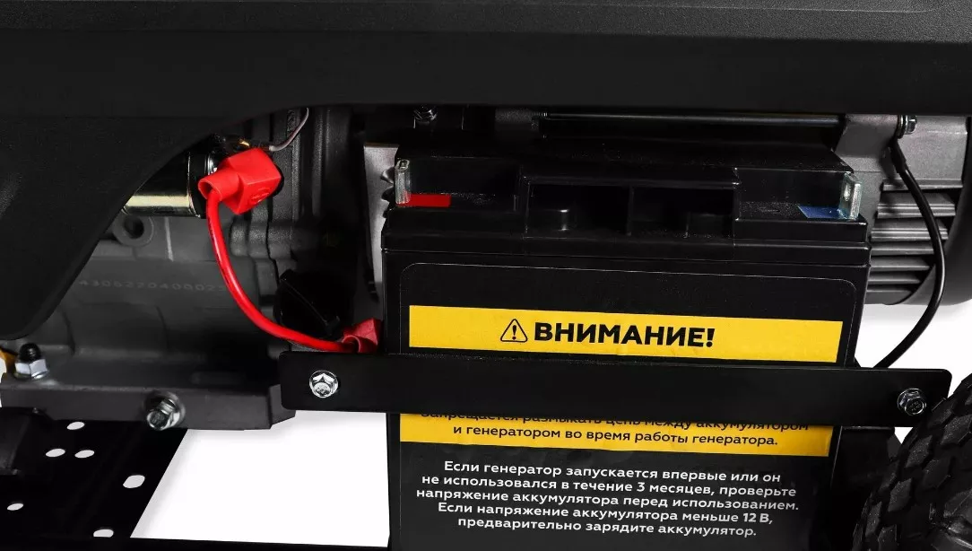 колёса, Аккумулятор в комплекте, Датчик уровня масла, Счетчик моточасов, Электростартер |