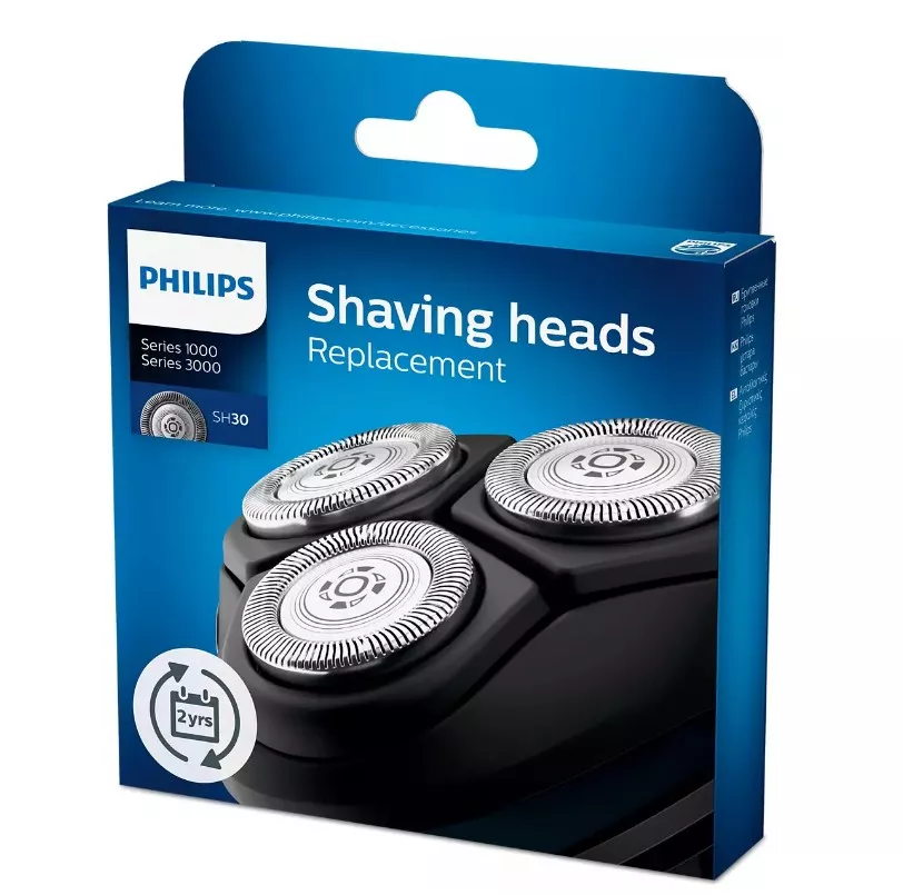 Бритвенные головки Philips SH30/50 для бритв серии 3000 и Click&Style. За два года бритвенные головки срезают до 9 миллионов волосков на лице. Заменяйте бритвенные головки, чтобы результат бритья всегда был идеальным. Комфортное сухое бритье благодаря системе лезвий ComfortCut с закругленными краями бритвенных головок. Лезвия легко скользят по коже и защищают ее от порезов и раздражения. Последние модели бритв Philips оснащены индикатором замены, который представляет собой символ бритвенного блока. Этот символ загорается, сигнализируя о необходимости замены бритвенных головок.
