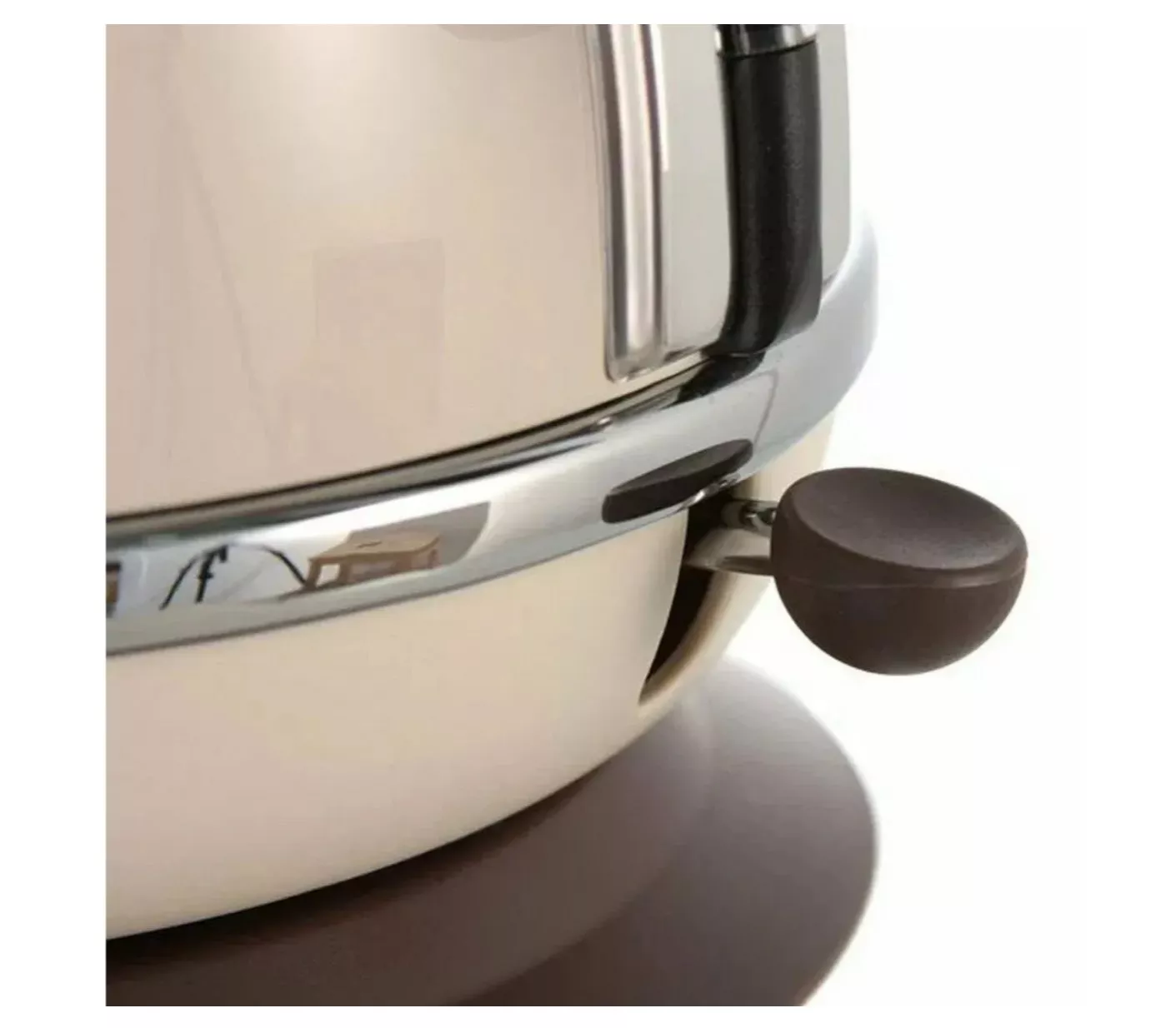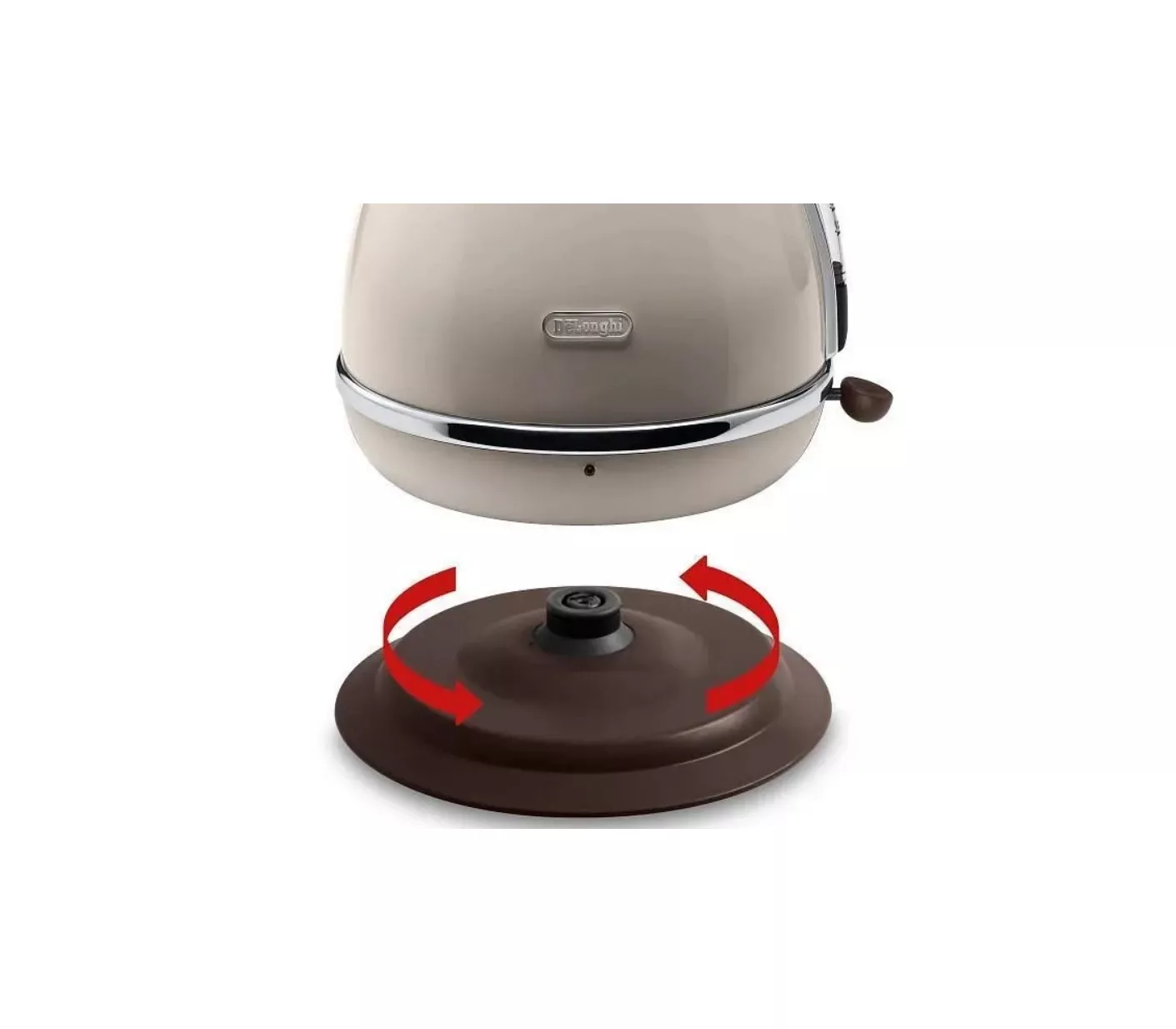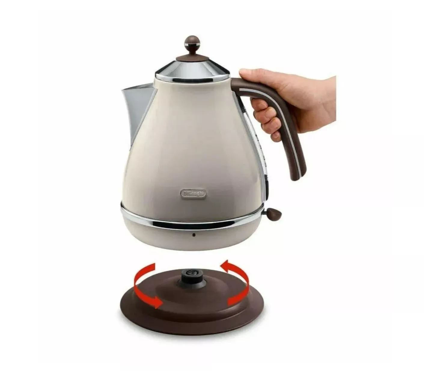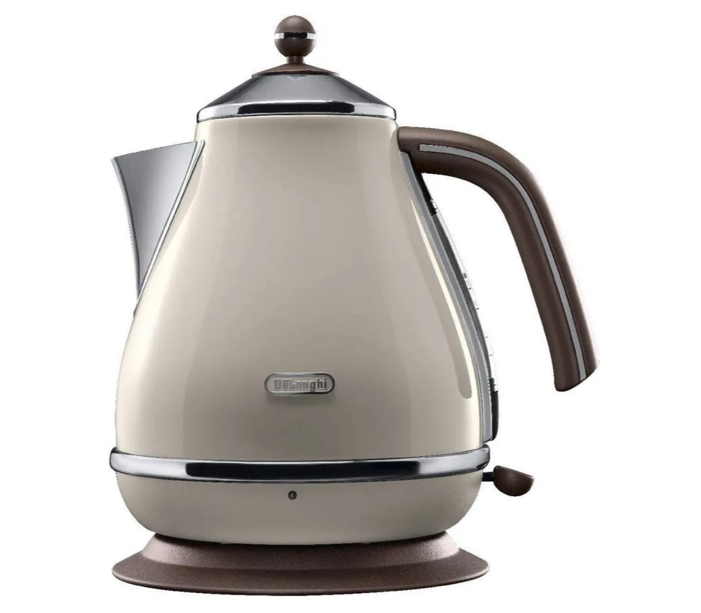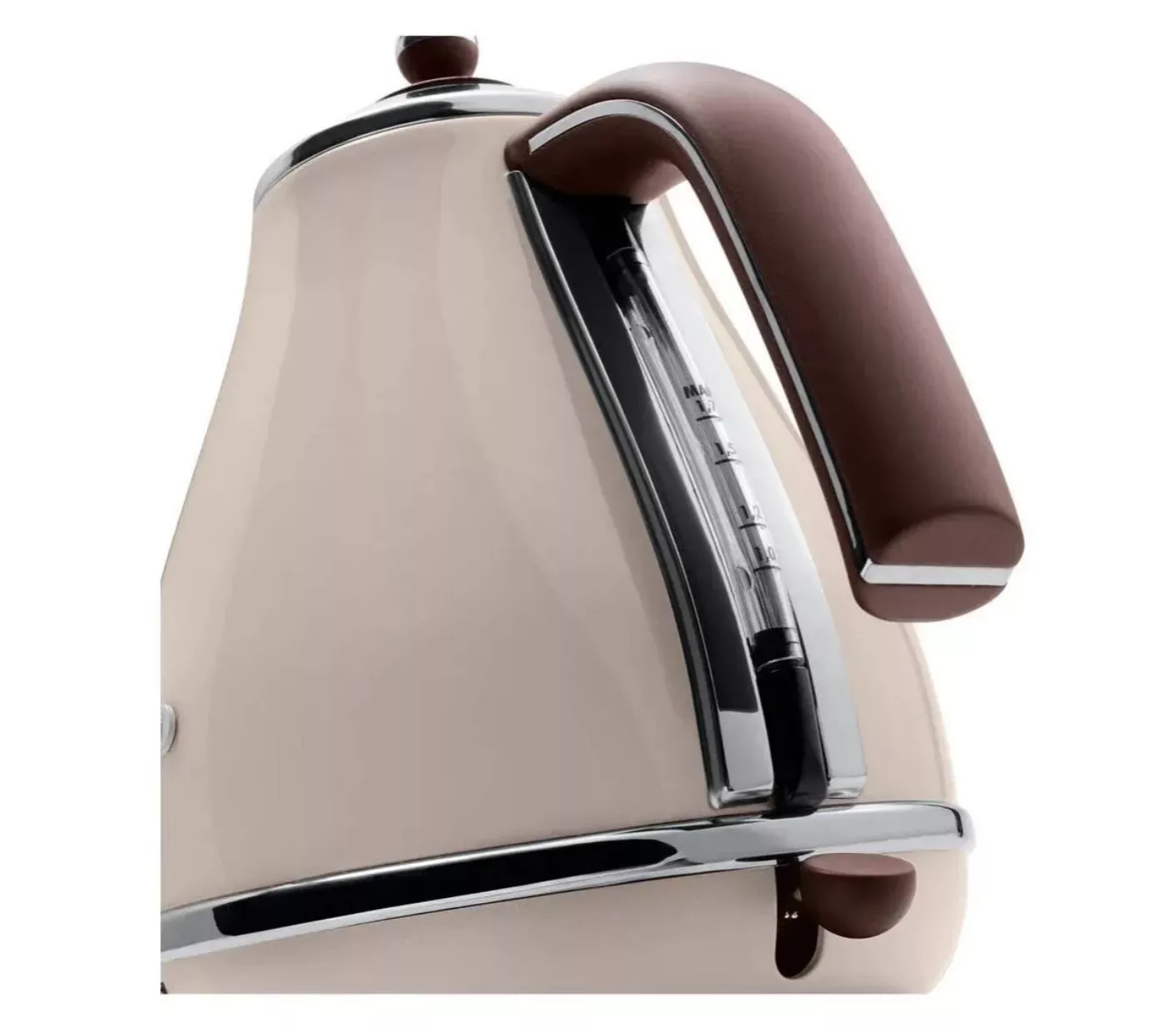 Чайник DeLonghi KBOV 2001 BG – это изысканный бежевый прибор в стиле ретро дизайнерской серии Icona Vintage. Хромированные детали, изящность и необычность – характеристики этого чайника. Под ручкой прибора расположен индикатор уровня воды, благодаря этой детали вы всегда будете знать, когда необходимо наполнить устройство. Чайник от DeLonghi имеет специальную трехуровневую систему безопасности: он отключается, когда вода закипает, устройство перегревается, если вы сняли его с основания включенным. Такой прибор от DeLonghi – цена безопасности и комфорта на вашей кухне. Его стильный дизайн – то, что выделяет эту модель среди множества других.