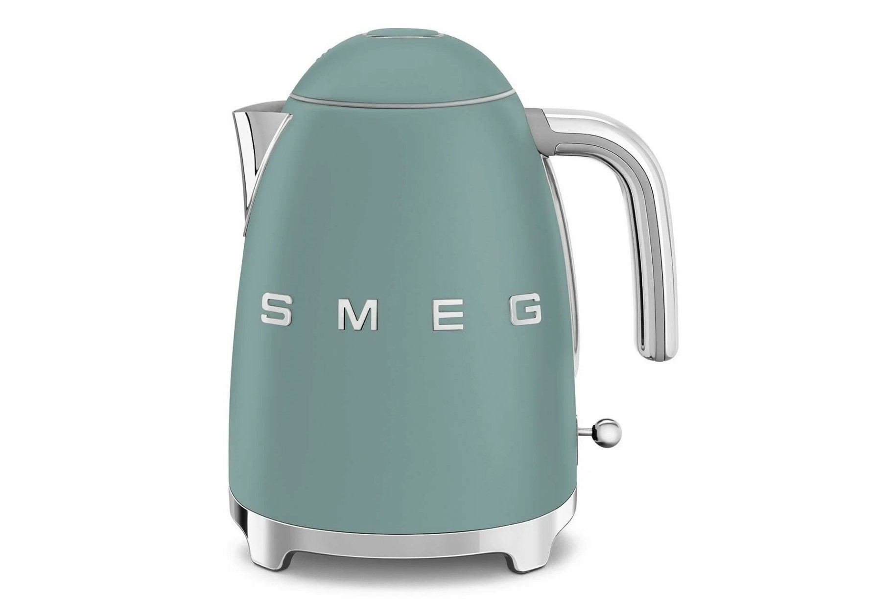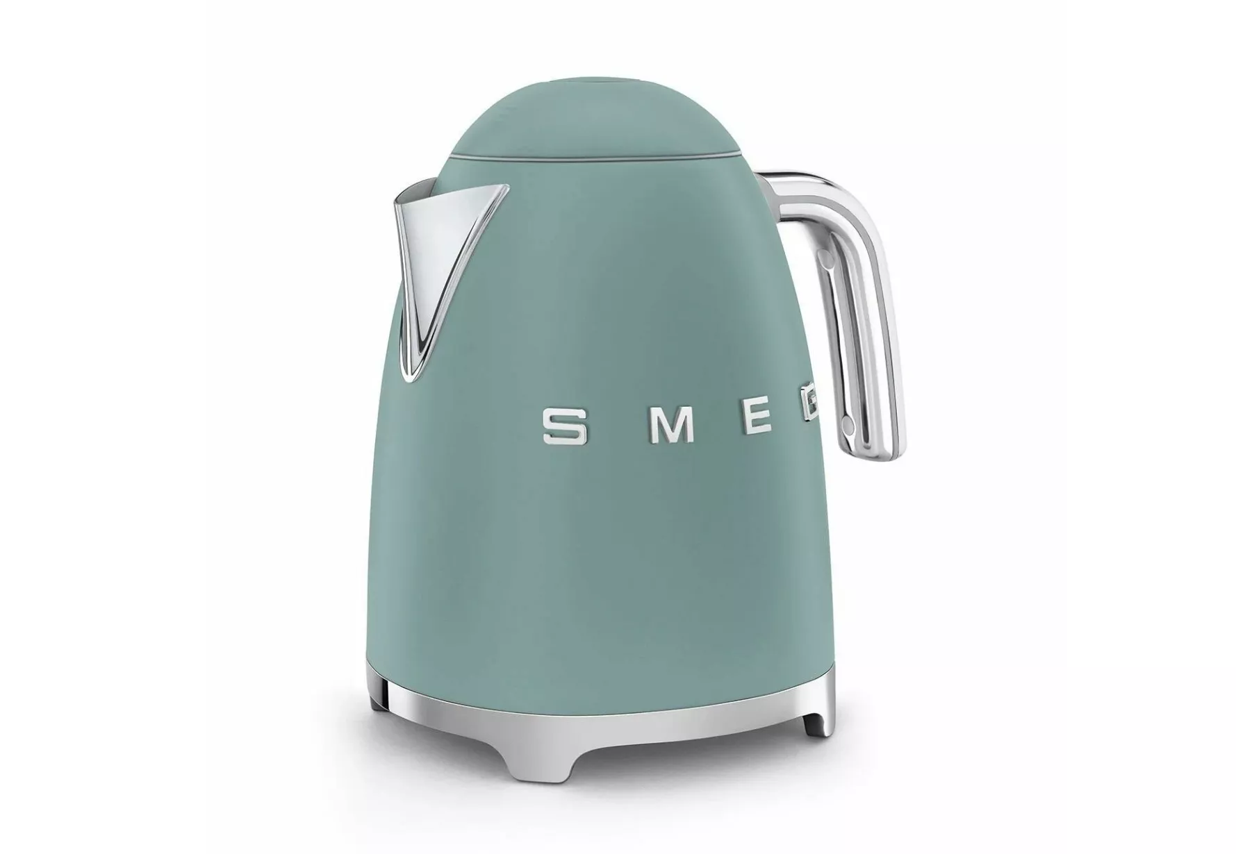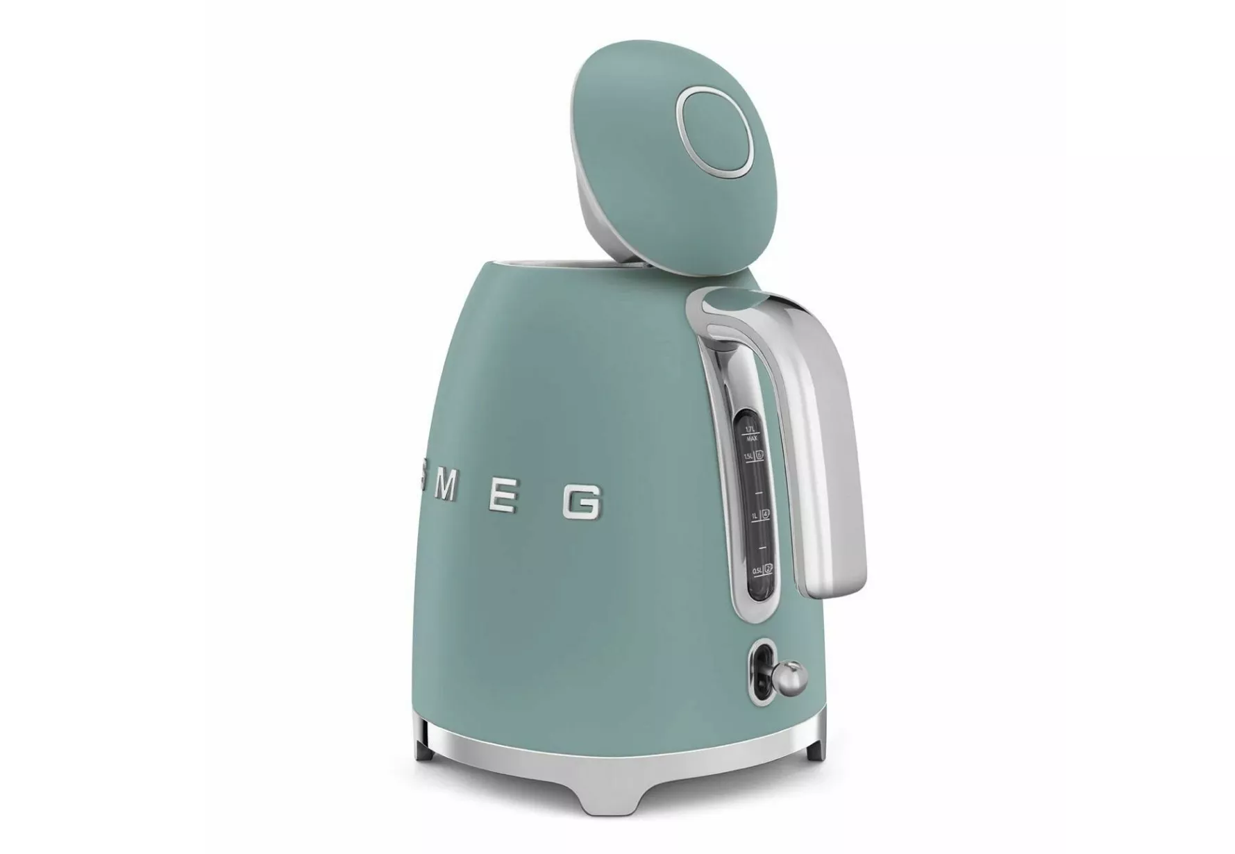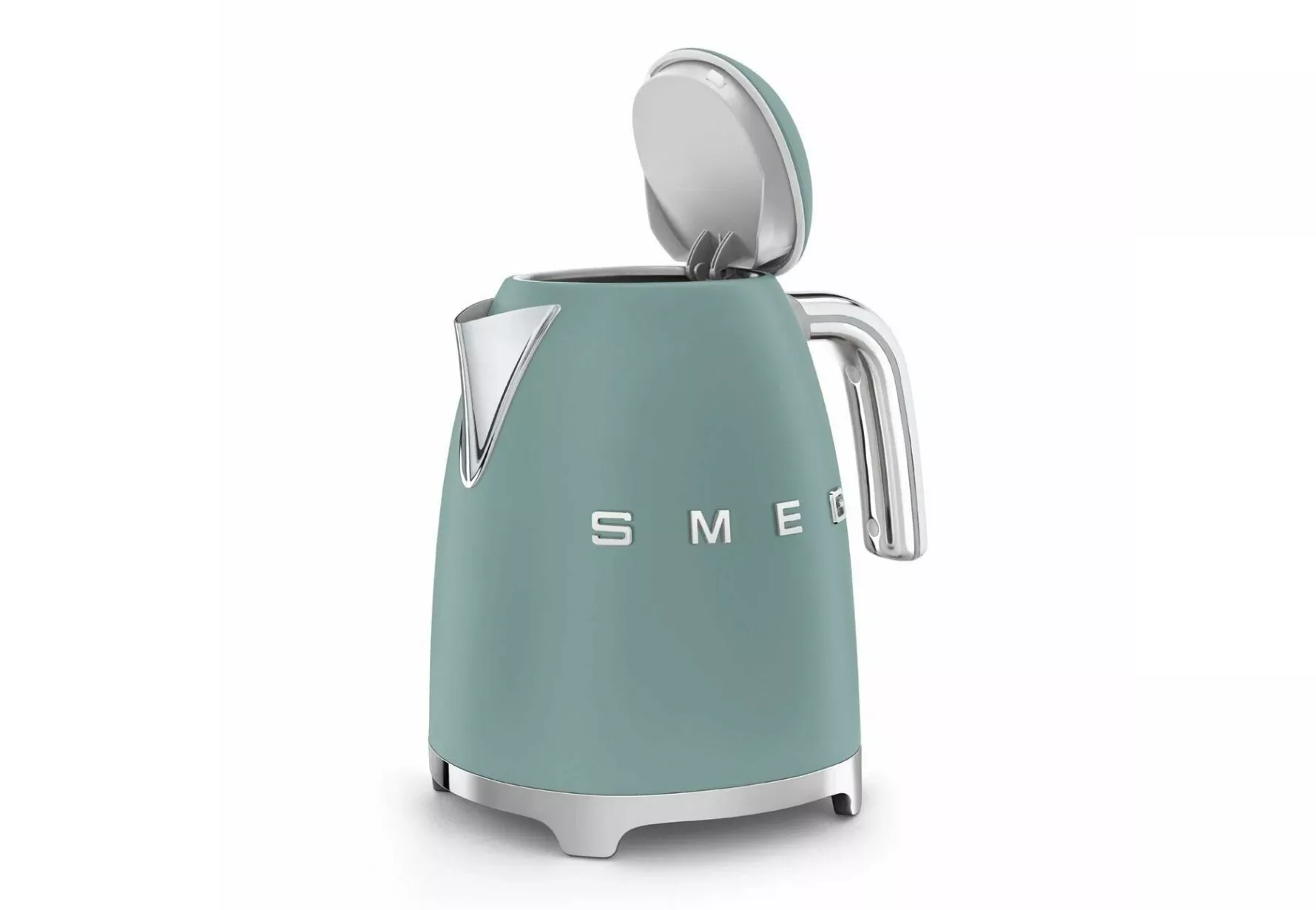 Электрический чайник Smeg KLF03EGMEU выполнен из нержавеющей стали. Внутренняя полированная поверхность отражает тепло, поэтому вода дольше остается горячей. Нержавеющая сталь не подвержена коррозии и легко очищается от накипи. Крышка прибора открывается простым нажатием на кнопку, размещенную сверху. Чтобы предотвратить ожог паром, открывание происходит постепенно. База с нескользящими ножками имеет подключение к электросети и систему безопасности, которая отключает нагрев при отсутствии воды.