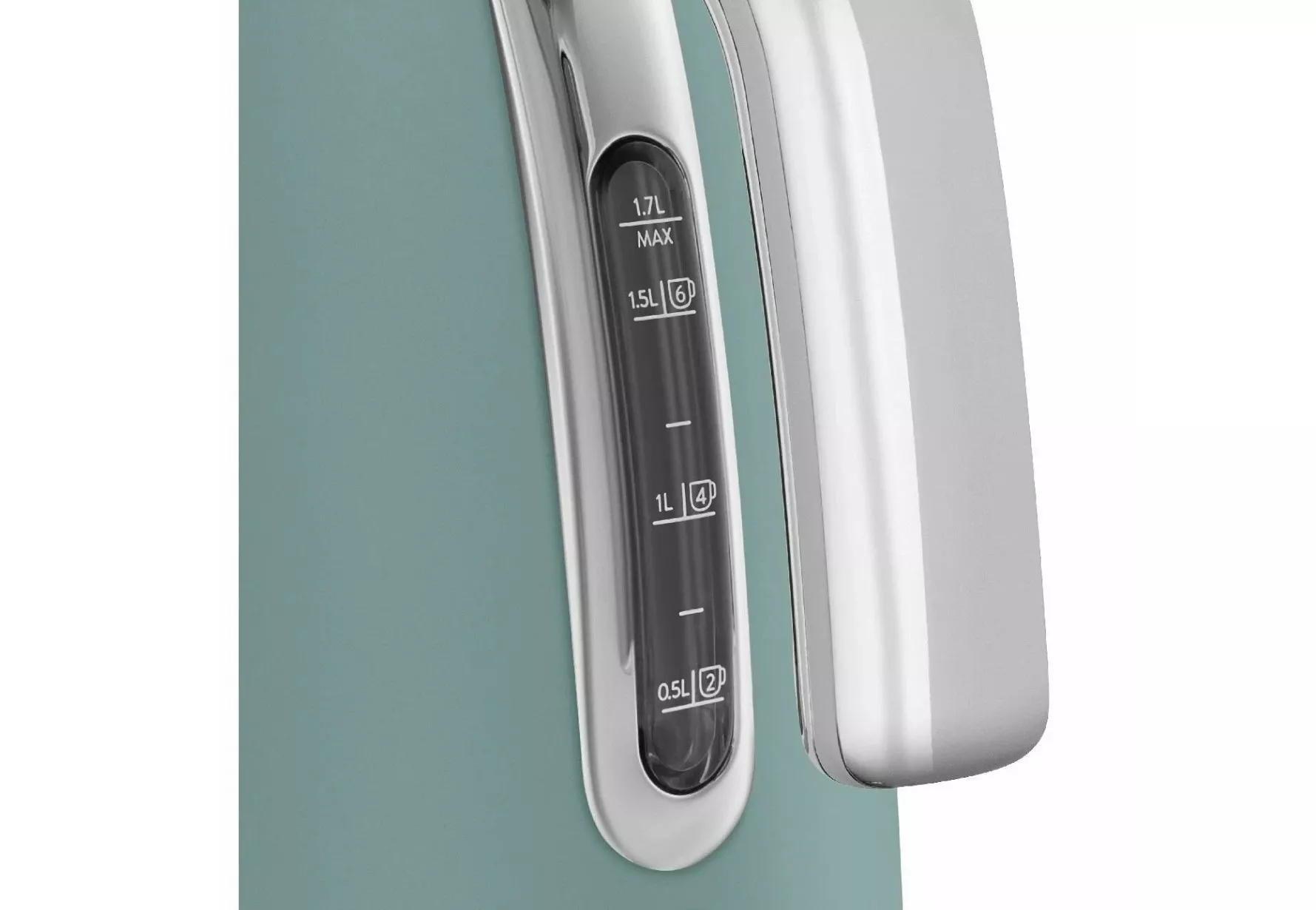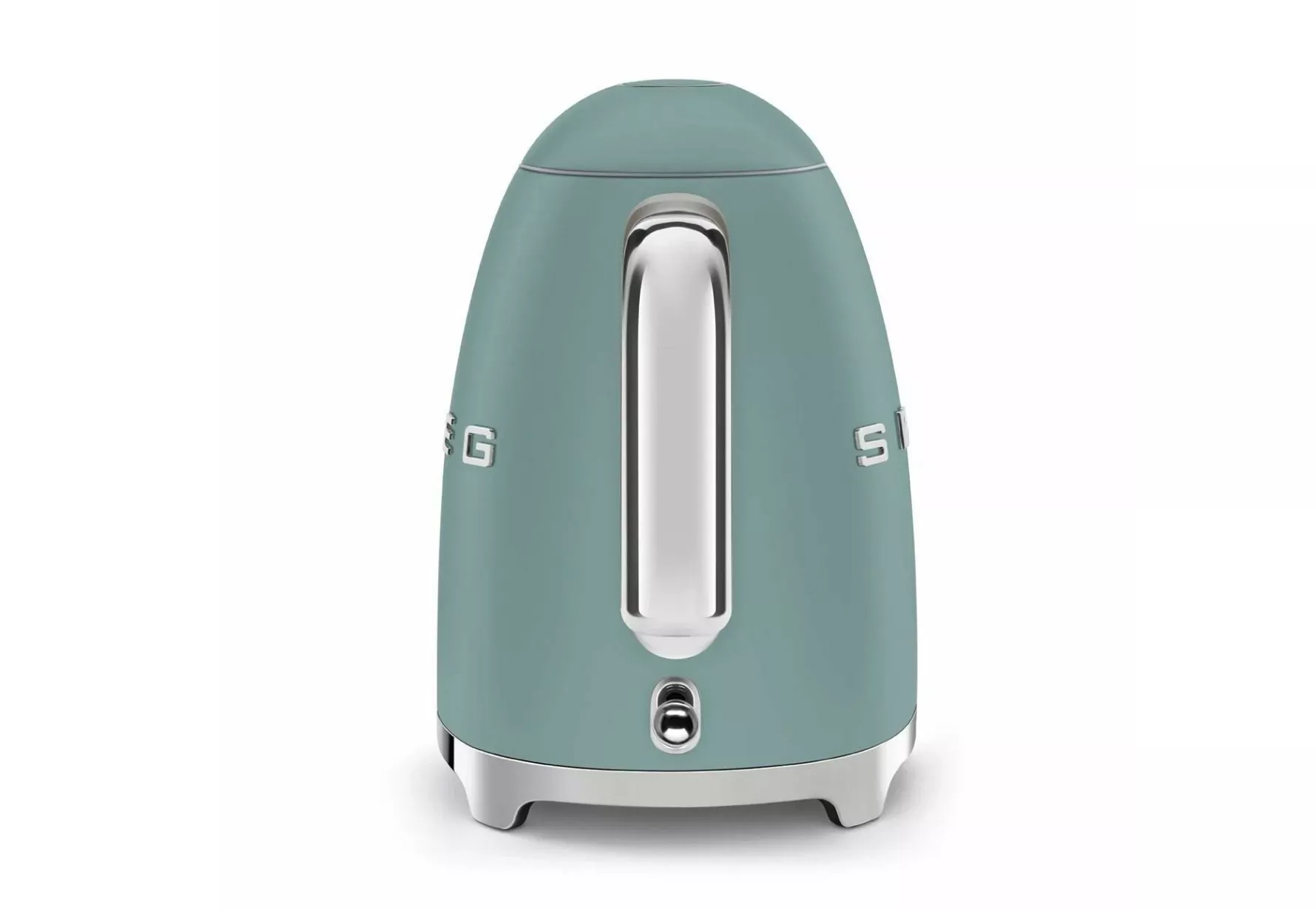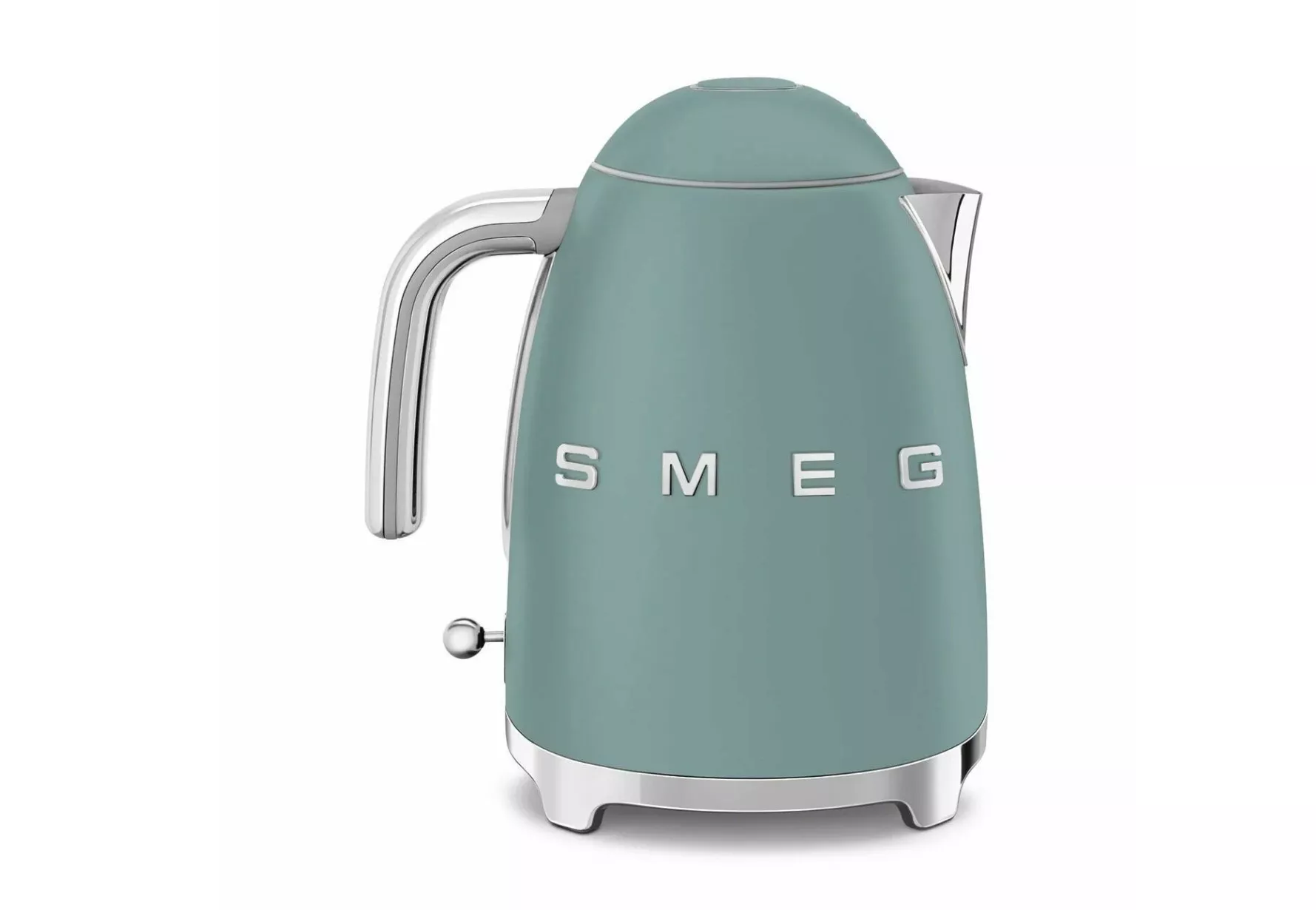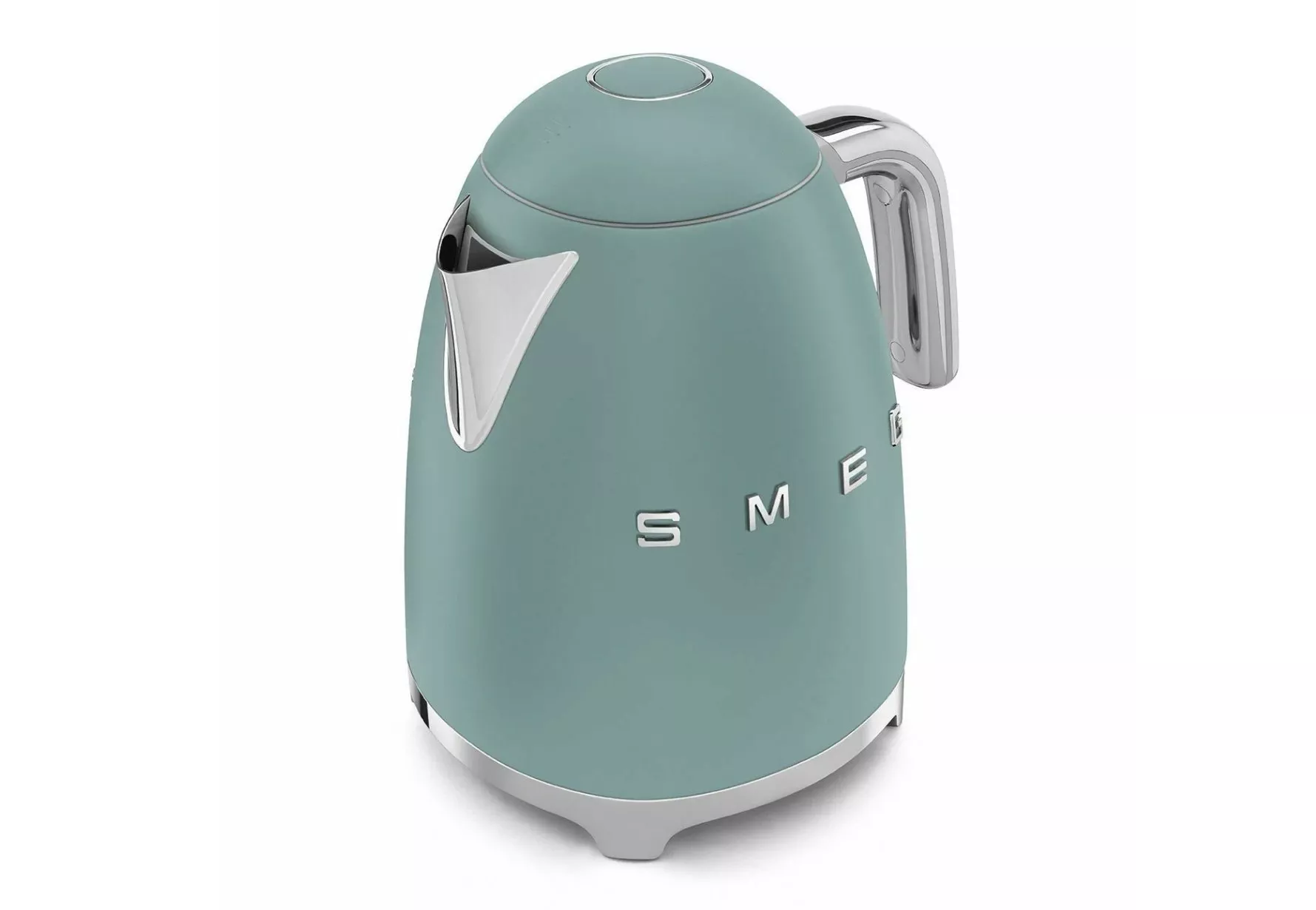 Электрический чайник Smeg KLF03EGMEU выполнен из нержавеющей стали. Внутренняя полированная поверхность отражает тепло, поэтому вода дольше остается горячей. Нержавеющая сталь не подвержена коррозии и легко очищается от накипи. Крышка прибора открывается простым нажатием на кнопку, размещенную сверху. Чтобы предотвратить ожог паром, открывание происходит постепенно. База с нескользящими ножками имеет подключение к электросети и систему безопасности, которая отключает нагрев при отсутствии воды.