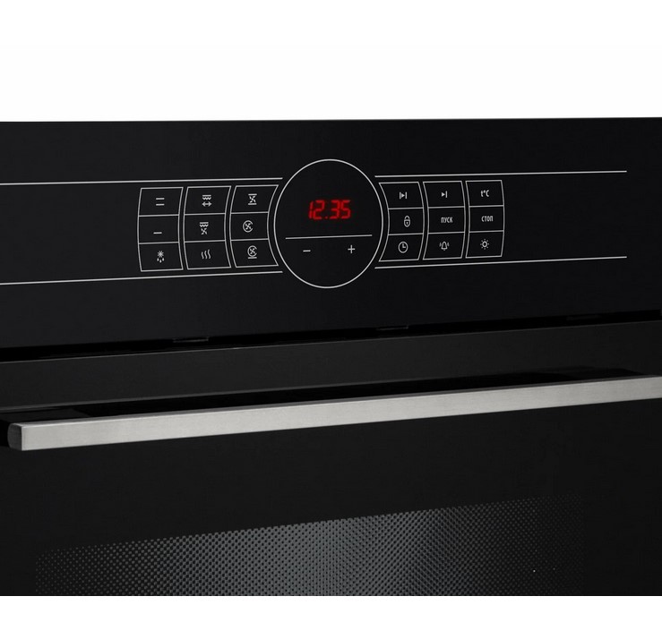 Сенсорная панель управления и информативный дисплей делают взаимодействие с техникой максимально простым и точным. Внутреннее пространство освещается яркой подсветкой, позволяя контролировать процесс приготовления, не открывая дверцу. Тройное стекло дверцы эффективно защищает от внешнего нагрева, обеспечивая безопасность на кухне.