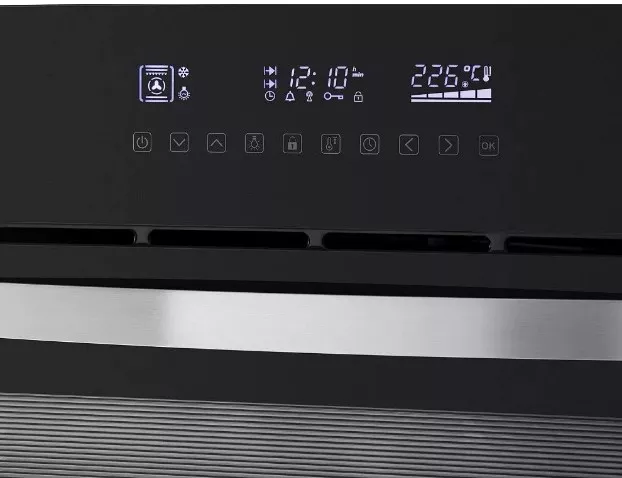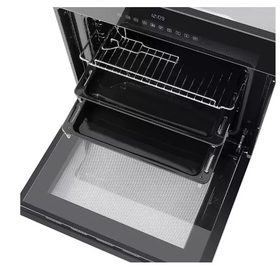Духовой шкаф в сборе,2 противня, решетка, прихват, 2ух уровневые хромированные телескопические направляющие, 5ти уровневые хромированные направляющие,инструкция,гарантийный талон