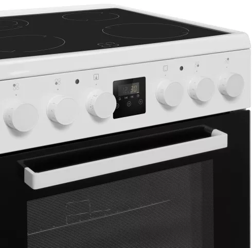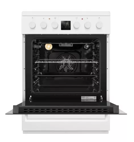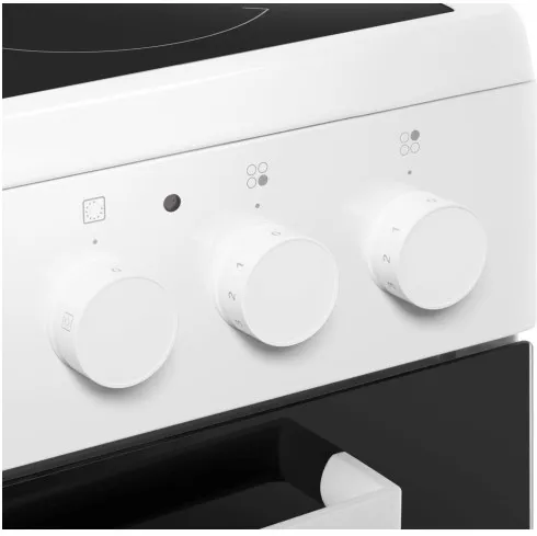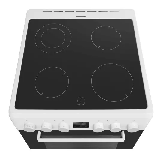 Плита оснащена современной стеклокерамической варочной поверхностью, которая не только эффектно выглядит, но и проста в уходе. Четыре конфорки типа Hi-Light обеспечивают быстрое нагревание и точный контроль температуры, позволяя одновременно готовить несколько блюд. Управление осуществляется с помощью интуитивно понятных поворотных переключателей, а электронный дисплей и таймер помогут вам точно соблюсти время приготовления.