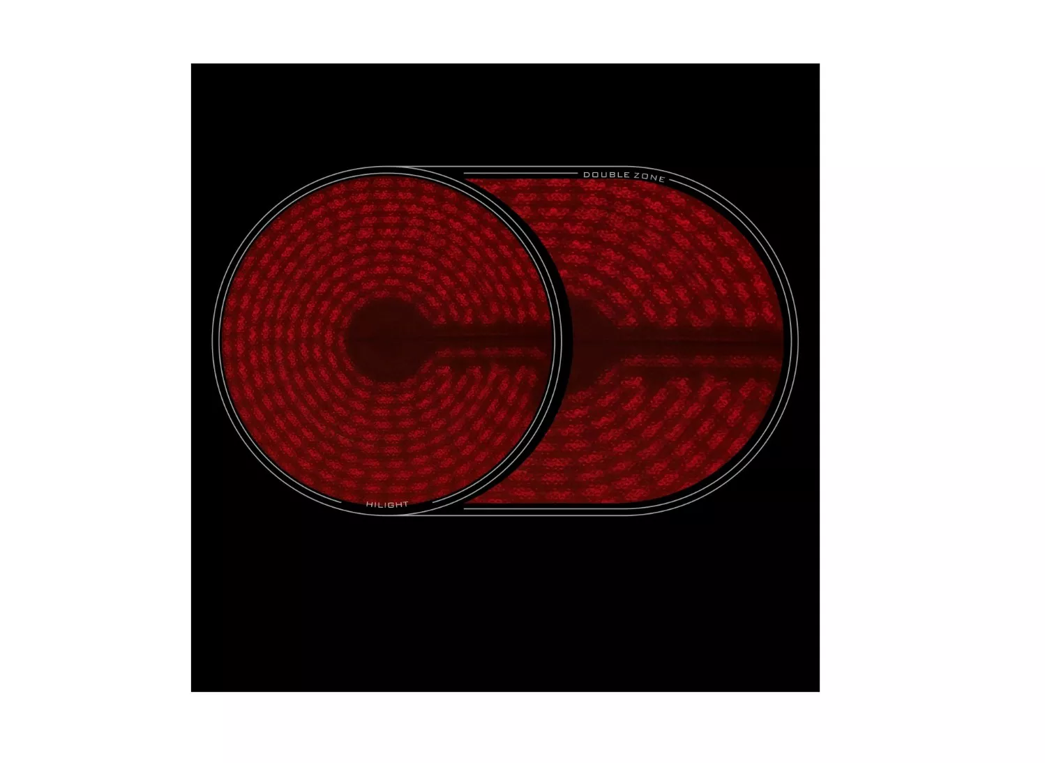 Панель оснащена четырьмя HiLight‑конфорками с девятью ступенями нагрева, одна из которых — трёхконтурная круглая, а другая — двухконтурная овальная зона расширения.