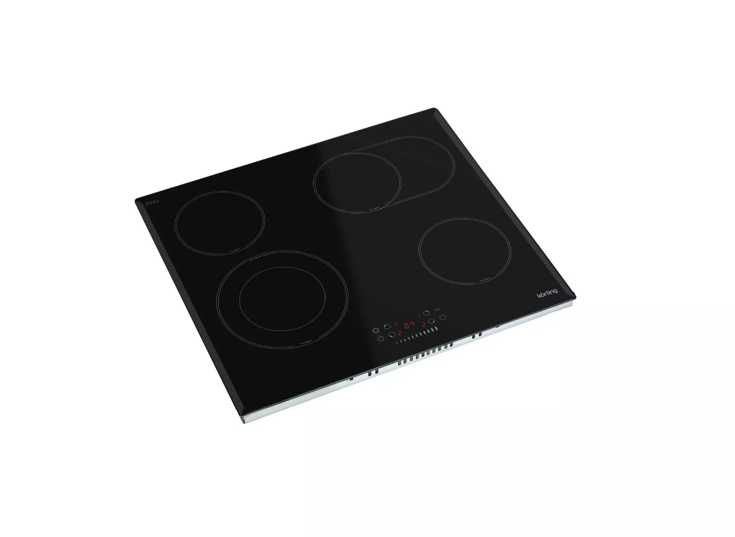 Электрическая варочная панель Korting HK 62550 B — стеклокерамическая панель 60 см с 4 HiLight‑конфорками, трёхконтурной и овальной зонами расширения и слайдерным сенсорным управлением, рассчитанная на гибкую работу с посудой разного размера.
