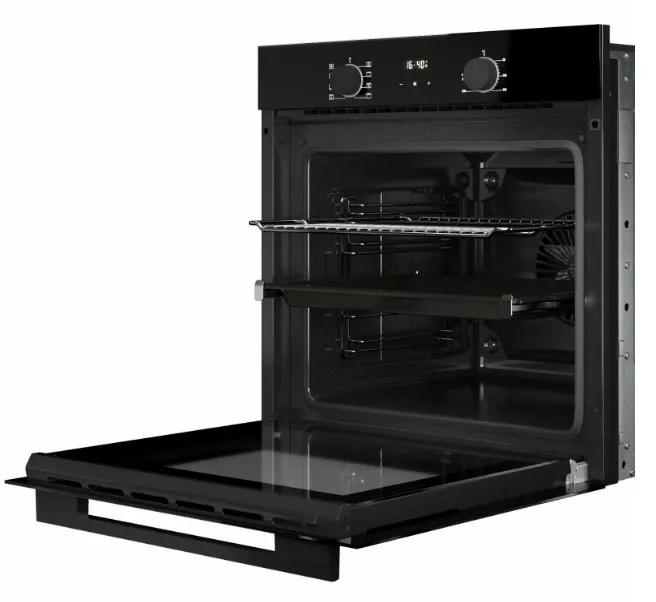 Производитель позаботился о том, чтобы пользоваться духовым шкафом было максимально удобно. Внутренняя камера покрыта эмалью легкой очистки — любые брызги и загрязнения удаляются без усилий. Яркая подсветка позволяет контролировать процесс, не открывая дверцу. Особого внимания заслуживает система направляющих: помимо стандартных хромированных, на одном из уровней установлены телескопические направляющие. Это значит, что вы можете плавно и полностью выдвинуть противень, как ящик, чтобы безопасно проверить стейк или перевертить пирог, не рискуя обжечься.