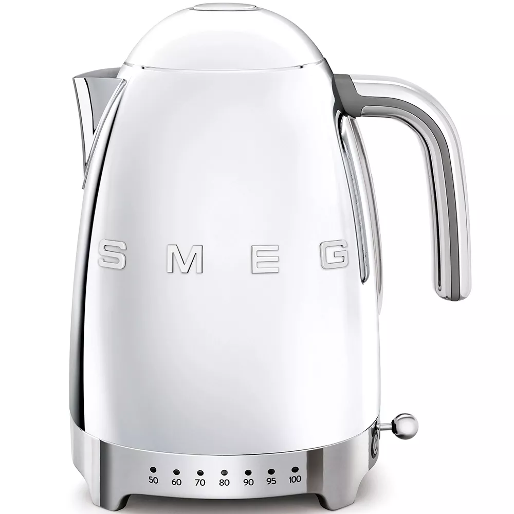 Электрочайник Smeg KLF04SSEU обладает стандартным 1.7-литровым объемом, которого будет достаточно для семьи из 2-3 человек. Благодаря высокому показателю мощности, равному 2400 Вт, нагрев воды займет минимум вашего времени. Одной из ключевых особенностей представленной модели стало семь режимов работы, благодаря которым пользователь сможет задать температуру нагрева воды до одного из следующих показателей: 50°, 60°, 70°, 80°, 90°, 95° и 100°. Фильтр в носике электроприбора выполнен из нержавеющей стали.