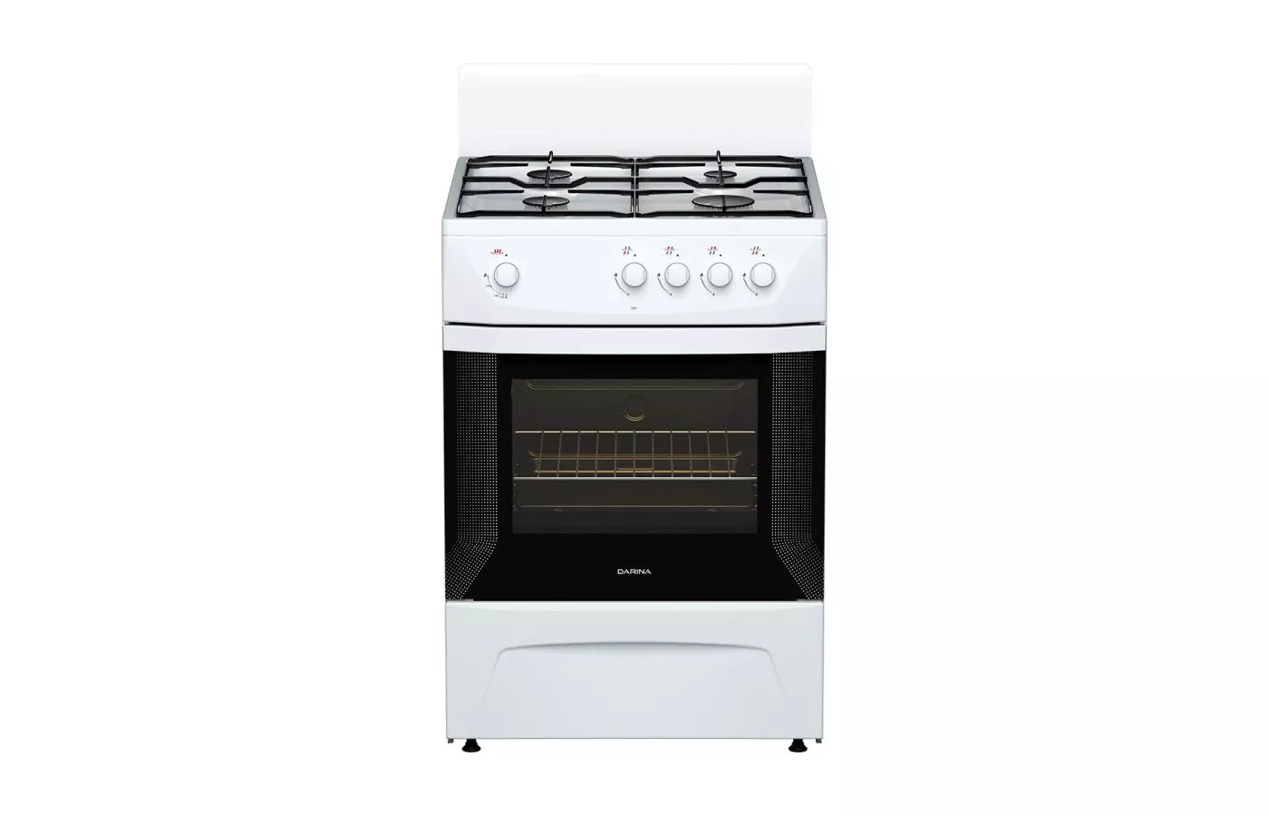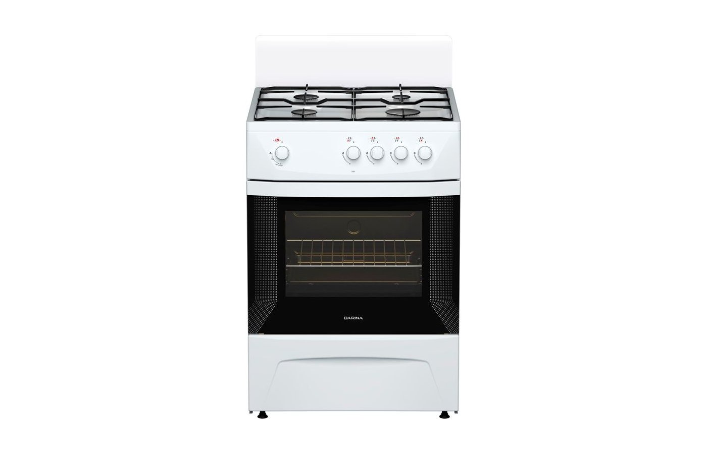 Газовая плита DARINA С 1001 W выполнена в белом цвете с поворотными ручками управления. Плита оснащена регулируемым опорами, фиксированным положением «малое пламя». Размер плиты – 60x60x85.