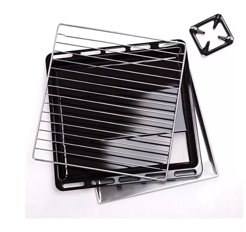 термоуказатель; штампованные направляющие духовки; регулировочные ножки; стальные решетки горелок стола; металлическая крышка; класс электробезопасности: II; масса нетто: 38.5 кг |
