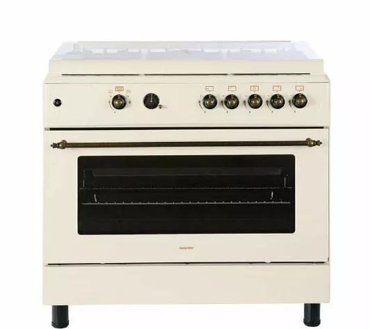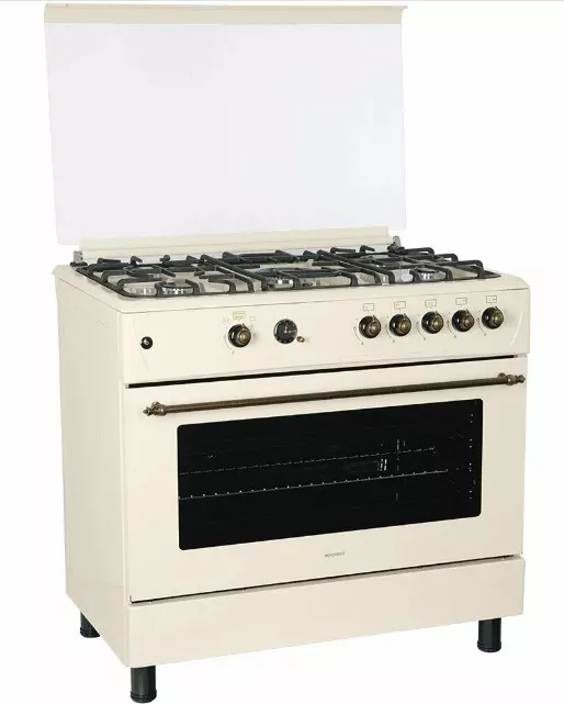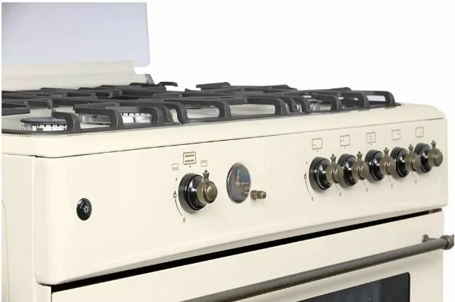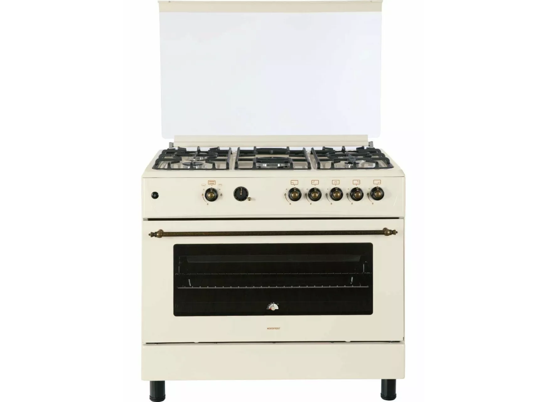Выполненная в ретро стиле широкая газовая плита NORDFROST GG 9064 YR имеет объем духовки 110 литров, оснащена 5 конфорками с функцией авторозжига.