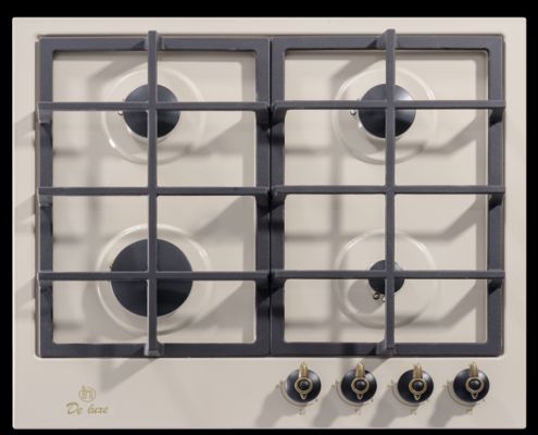 De Luxe TG4_750231F-072 обладает 4 независимыми конфорками с функцией электроподжига. Чугунные решетки.