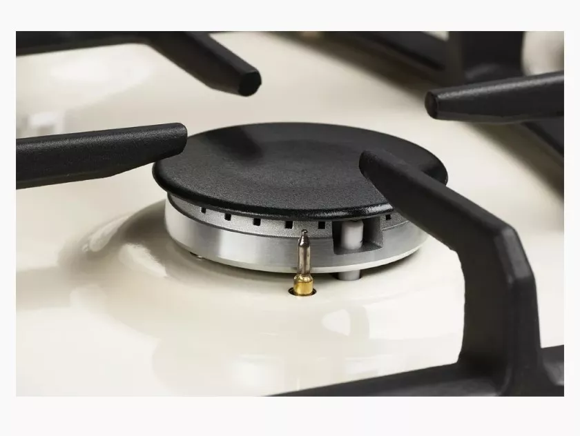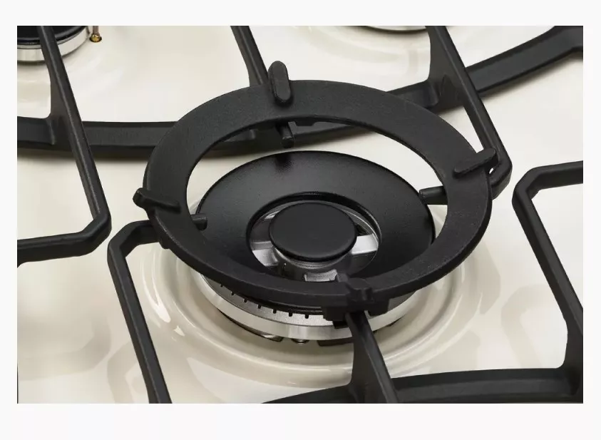 Мощность конфорок, кВт: средняя 3,8 кВт, передняя левая 2 кВт, передняя правая 1 кВт, задняя левая 2,9 кВт, задняя правая 2 кВт, Форсунки под сжиженный газ, Фурнитура цвета бронзы, Окантовка прямой край, Тип конфорок SABAF, Подставка WOK