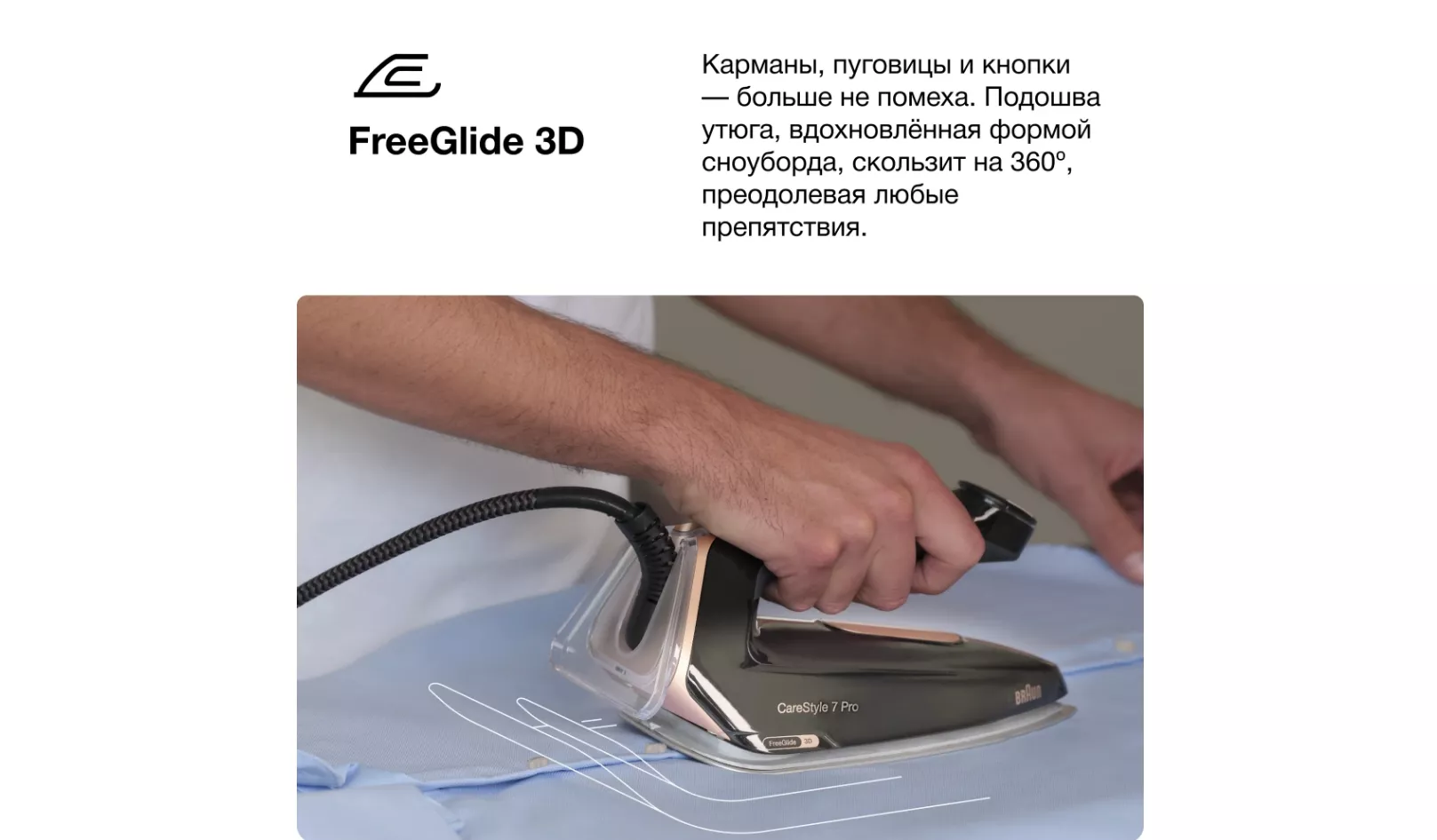 Новая гладильная система CareStyle 7 – это мощный парогенератор, обеспечивающий непрерывную подачу пара до 160 г/мин и паровым ударом 650 г/мин ,благодаря инновационной технологии PowerSteam. Откройте для себя новый уровень качества глажки и инновационные функции, которые позволят вам легко и быстро победить в борьбе с самыми жесткими тканями, и самыми стойкими складками.