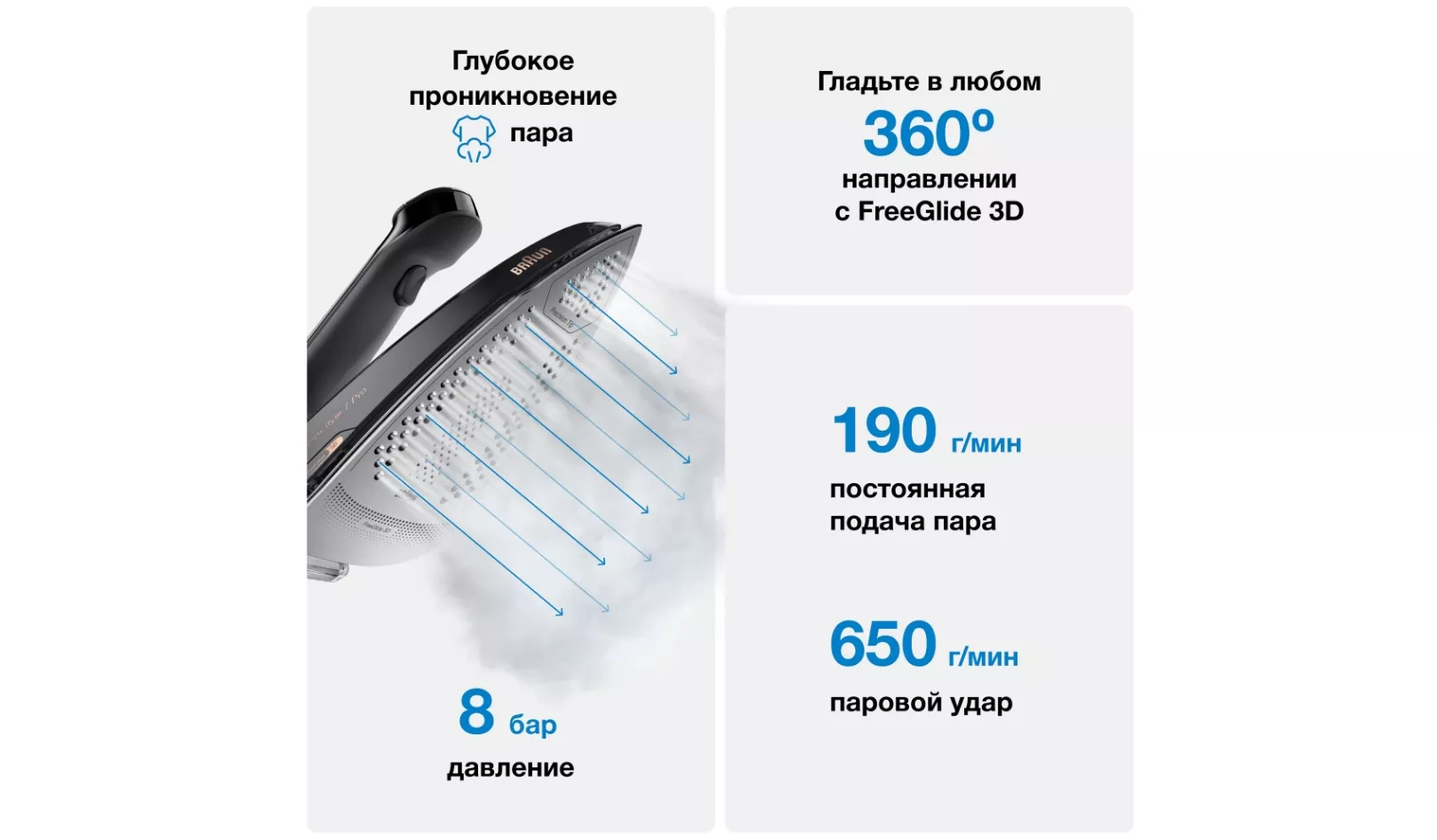 FreeGlide 3D, Protect System, Silent Steam, iCare |