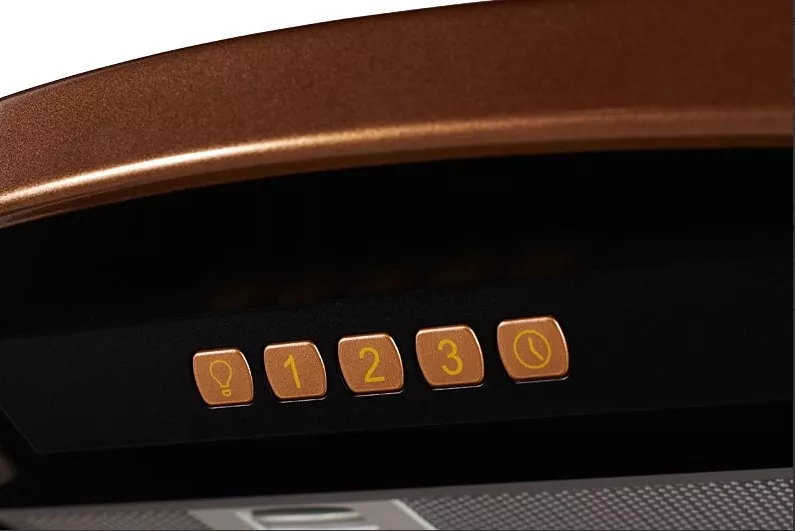 Элегантный образ модели BONA 60 B Bronze дополнен бронзовой отделкой. Три режима скорости позволяют подобрать необходимый вариант для любых условий. Модель работает в режиме отвода и фильтрации. Низкий уровень шума не создает дискомфорт во время нахождения на кухне, беседе или просмотре телевизора. Наличие таймера расширяет возможности вытяжки — через определенный промежуток времени модель автоматически выключается. Галогеновые лампы равномерно освещают рабочую поверхность и являются дополнительным источником света на кухне.