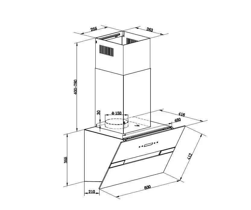 Вытяжка оснащена удобным сенсорным управлением 3-мя скоростями.