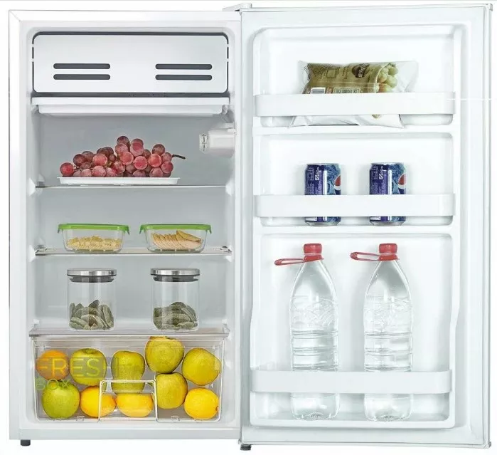 Холодильник Бирюса 95 имеет полезный объем 93 л. Он оснащен 3 стеклянными плоскими полками, ящиком для овощей и фруктов, 3 навесными полками на двери. Для замораживания продуктов есть отдел в верхней части с температурой -6°C.