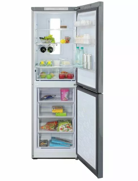 Металлическая отделка придаёт холодильнику стильный вид, который отлично впишется в интерьер любой кухни. Внутренние полки и контейнеры сделаны из прочных и безопасных материалов, что гарантирует долговечность и лёгкость в уходе.