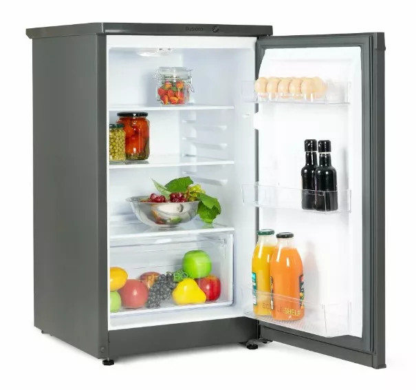 Несмотря на скромные габариты (высота 87 см, ширина 50 см, глубина 50 см), внутренний объем холодильника составляет 115 литров. Этого достаточно для хранения базового набора продуктов: молочных изделий, напитков, овощей и полуфабрикатов. Продуманное внутреннее пространство с полками и контейнером для овощей поможет поддерживать порядок. А светодиодная подсветка обеспечит отличную видимость содержимого даже в вечернее время.