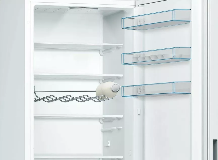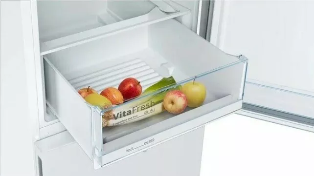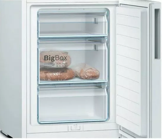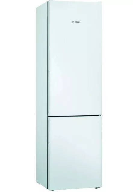 Двухкамерный холодильник Bosch KGV39VWEA имеет высоту 201 см и представлен в белом цвете. Такой дизайн подчеркнет абсолютно любой интерьер кухни. Общий полезный объем составляет 342 л, из которых 248 л приходится на холодильную камеру, а 94 л — на холодильную. Такая модель оборудования отлично подойдет для семьи из 4-х человек. Светодиодная подсветка LED ярко и равномерно освещает внутреннее пространство. Способом монтажа — скользящее крепление двери. Вы можете поменять направление открывание дверцы, так как упор переставляемый, и ее можно перевесить на другую сторону. Такая функция открывает больше возможностей для установки.