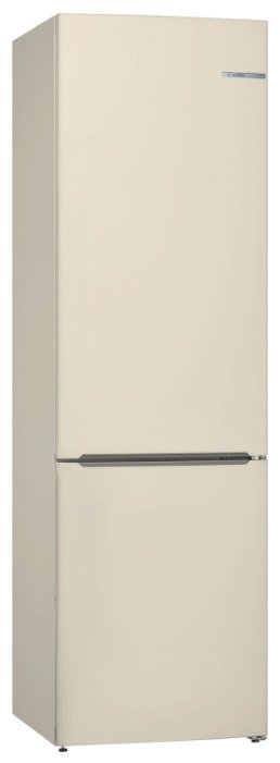 Холодильник BOSCH Serie 4 KGV39XK22R в кремово-бежевом корпусе отличается увеличенными размерами (200x60x63 см) и вместительностью (351 л). Кроме того, модель обладает технологией NatureCool, позволяющей сохранят продукты свежими и сочными. Этого удалось добиться за счет вынесения испарителя за пределы камер, а также за счет отказа от применения металлических деталей в конструкции морозильной камеры. Последнее обстоятельство также препятствует образованию ледяной шубы в морозильной камере.