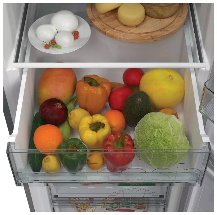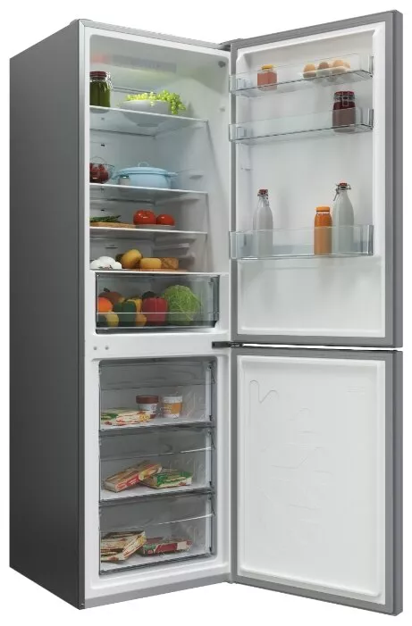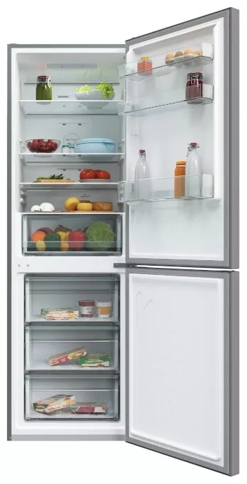 Холодильник Candy CCRN 6180S представляет собой классический аппарат для хранения продуктов, выполненный в серебристом корпусе размерами 59.5x185x65.7 см. Открытие верхней дверцы открывает доступ к панели управления с индикаторами, которая обеспечивает удобную настройку агрегата. В нижней части располагается морозильная камера, поэтому продукты из ее ящиков легче будет доставать. Полный объем двух камер соответствует 333 л: верхняя камера занимает