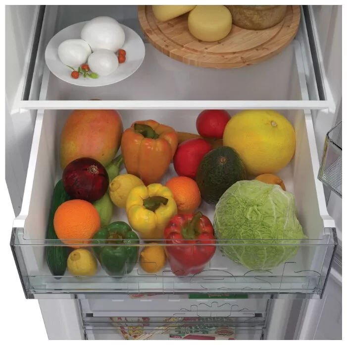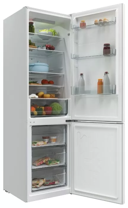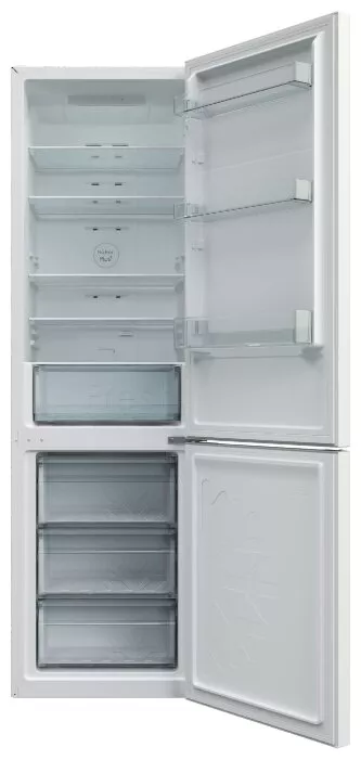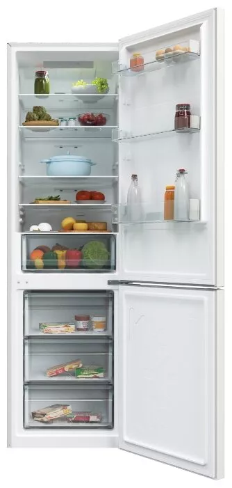 Морозильная камера состоит из 3-х отделений. А в холодильной камере расположены стеклянные полки, навесные полки, отделение для хранения овощей и фруктов. Металлическое покрытие без труда очищается от загрязнений. Внутренний дисплей с индикацией температурного режима, LED-подсветка и звуковой сигнал при открытой дверце обеспечивают удобство в эксплуатации холодильника Candy CCRN 6200W.