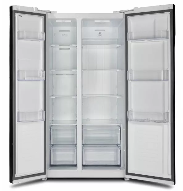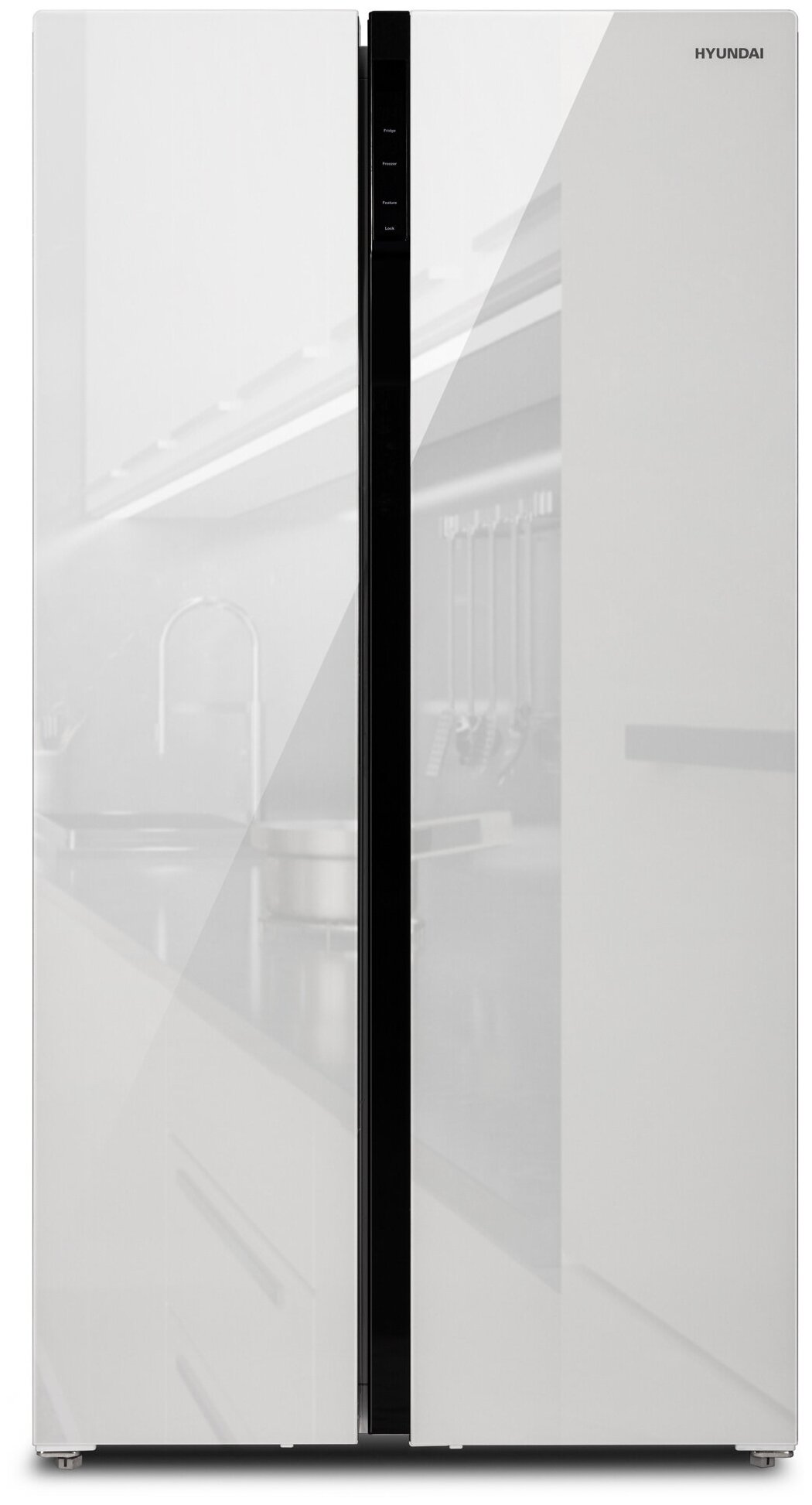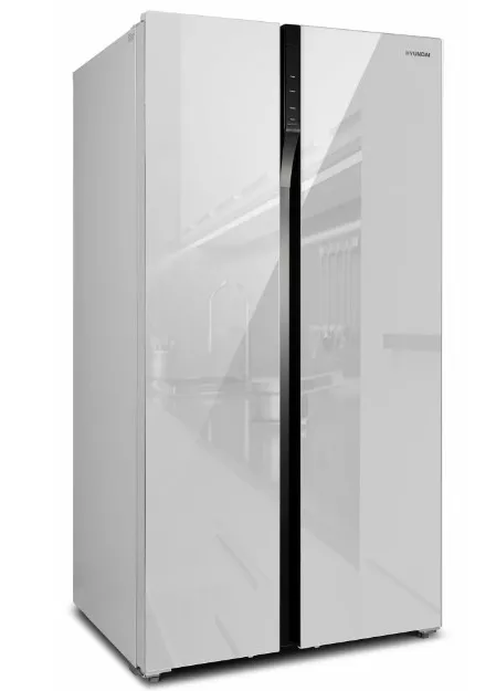 Хотите воздушную кухню и много места для хранения продуктов? 2-х дверный холодильник HYUNDAI CS5003F (тип Side-by-Side) с белыми стеклянными дверьми, органично соединил в себе практичность и современный дизайн.