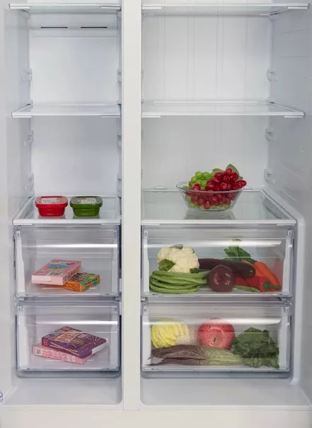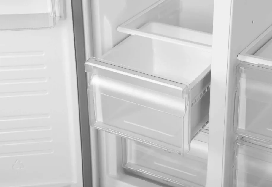 Выдвижные ящики, установленные в холодильной и морозильной камерах, обеспечивают удобное хранение, визуальный контроль и быстрый доступ к хранящимся там продуктам.