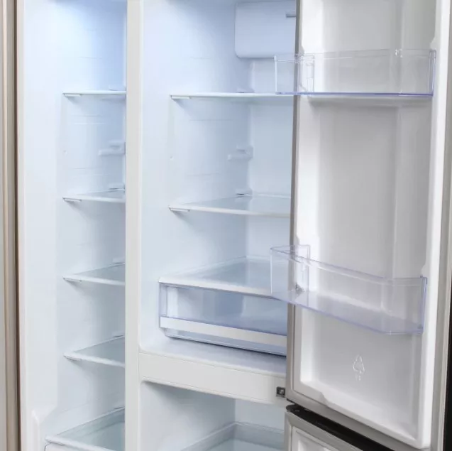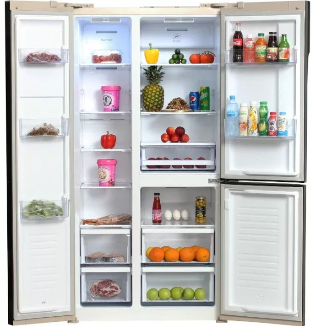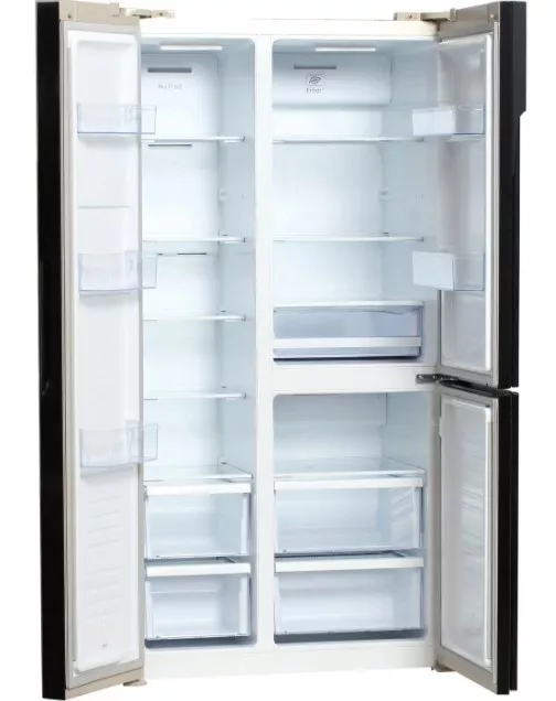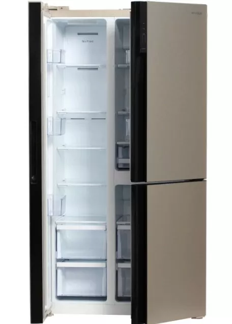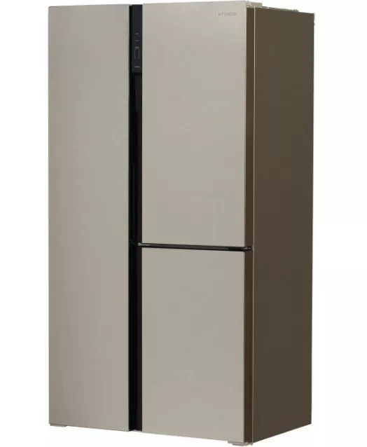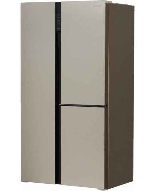 Ценителям оригинальных вещей очень понравится 3-х дверный инверторный холодильник HYUNDAI CS5073FV (тип Side by Side) со стеклянными дверцами, выполненными в цвете «Шампань».